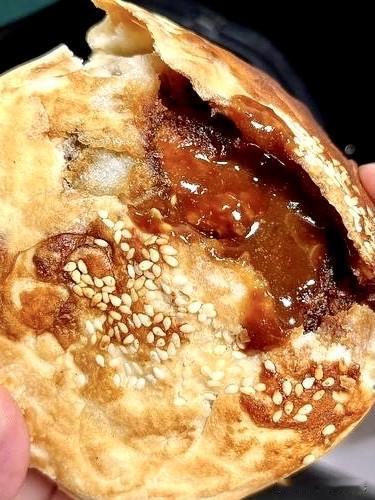 按照朋友的介绍,我们去了当地一家比较有名的小店买锅盔。 根据导航,走到小店一看,好家伙,等着排队买锅盔的人,足足站了5米。 刚开始我们很犹豫要不要加入排队的队伍,后来想到来都来了,反正是抱着品美食的心态,逛吃逛吃,又不赶时间,就排队了。 排队的人看上去不少,但因为限制每人每次购买不超过10个,很多人也只是买几个尝尝,一锅出炉,大概有20个左右,所以这样一来,走得还是挺快的。 排队的过程中,目睹了它的制作工艺:采用发面工艺,面皮蓬松柔软;红糖馅加入芝麻增香,先用铁板煎,再放进炉膛里,通过炭火烘烤,赋予了它独特香气。 好不容易轮到我们了,买了4个,迫不及待地咬了一口。 说说我的体验吧。 锅盔外皮酥脆、软韧,带着焦香;内里柔软,红糖馅滚烫浓郁,醇厚的甜味混合着芝麻的焦香,甜而不腻的。 咬破外皮的瞬间,热乎乎的红糖浆喷涌涌出,形成独特的“爆浆”效果,堪称红糖流心。 乐山的红糖锅盔确实给我带来了一股强烈的幸福感。 尤其刚出炉时,那口热腾腾的香甜软糯,相信很多尝过的人都念念不忘。 友情提示:小心烫! 吃刚出炉的红糖锅盔一定不能心急,里面融化的红糖馅温度非常高,容易烫到舌头,而且,皮薄,一咬就破,红糖流心止不住的外溢,不仅烫口,还烫手。 此外,吃红糖锅盔还有一个小技巧: 红糖锅盔作为甜点,可以和乐山其他咸鲜的美食(如跷脚牛肉、钵钵鸡)搭配着吃,甜咸交错,体验更丰富。 话说,你吃过乐山的红糖锅盔吗?感觉怎么样?和你们那里的锅盔,有什么区别? 欢迎关注@丁丁的慢时光 乐山旅行美食 乐山美食