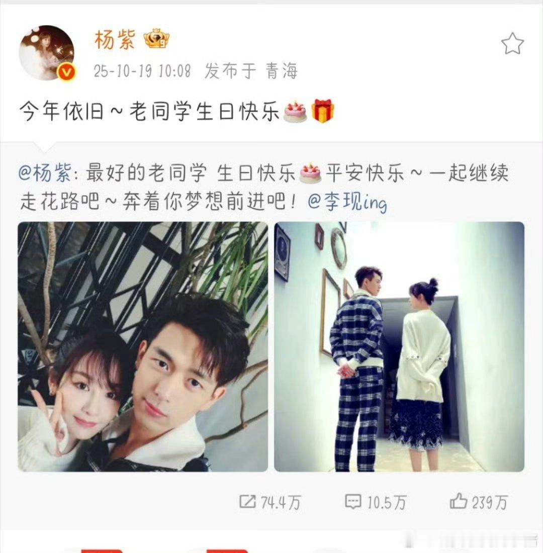 杨紫已经连续七年给李现庆生了