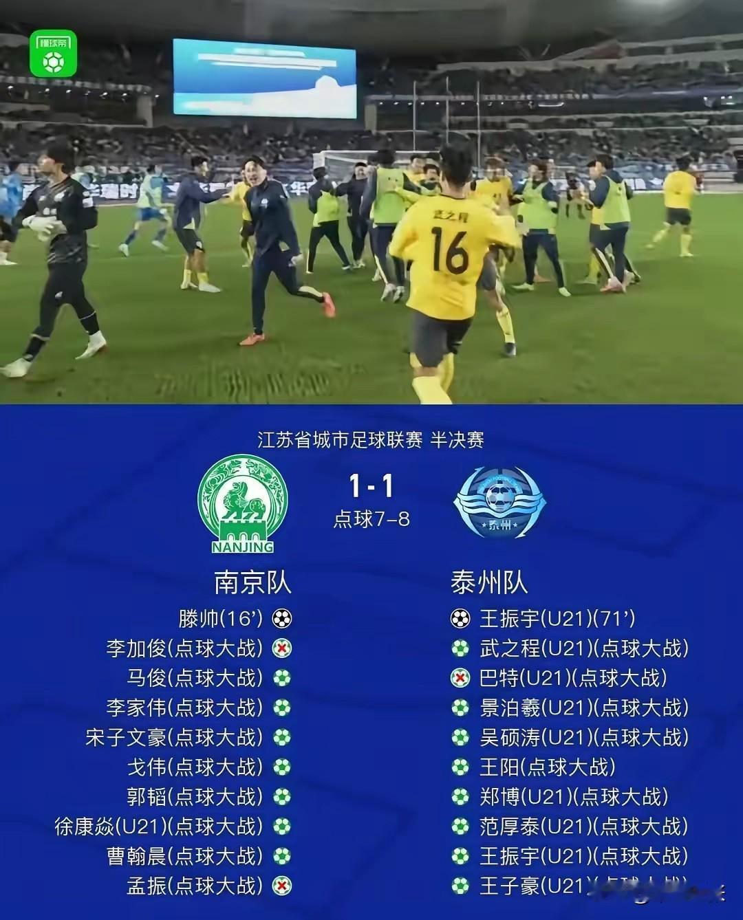 南京队在首届“苏超”半决赛点球大战中8:9不敌泰州队,无缘决赛,孟振堪称最倒霉球