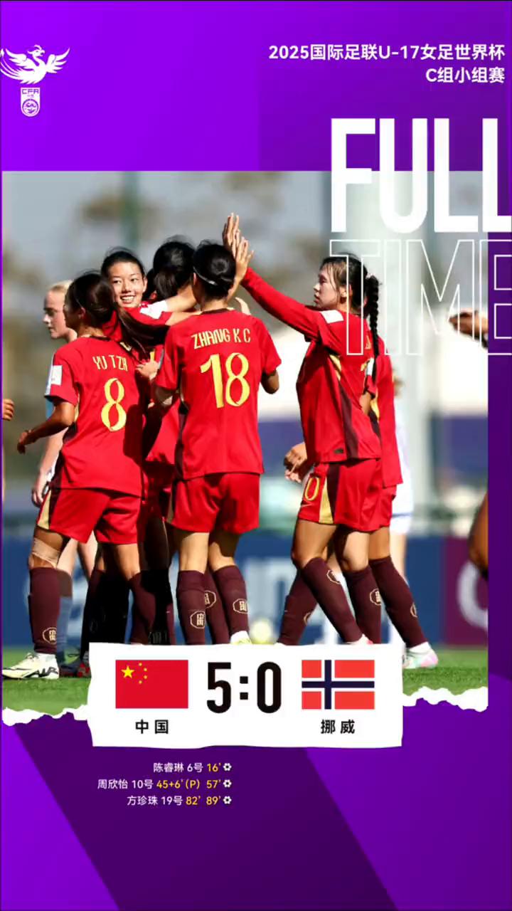 北京时间十月十八日晚,又十七女足世界杯c组首轮进行了一场较量,如果又十七女足五比零大胜挪威,又十七女足收获赛事开门红。 本场比赛第十六分钟,全场打入一脚精彩的直接任意球。上半场比赛结束前,中国队获得点球机会,周心怡一蹴而就,帮助球队扩大优势。下半场比赛第五十六分钟,周心怡近区内小角度凌空电射,梅开二度。比赛最后阶段,替补登场的方珍珠连入两球,将比分锁定为五比零。 根据赛程,中国队接下来将在北京时间十月二十二日凌晨对阵美国队,球队主教练王洪亮表示,中国队的小组赛目标是以前两名的成绩晋级。