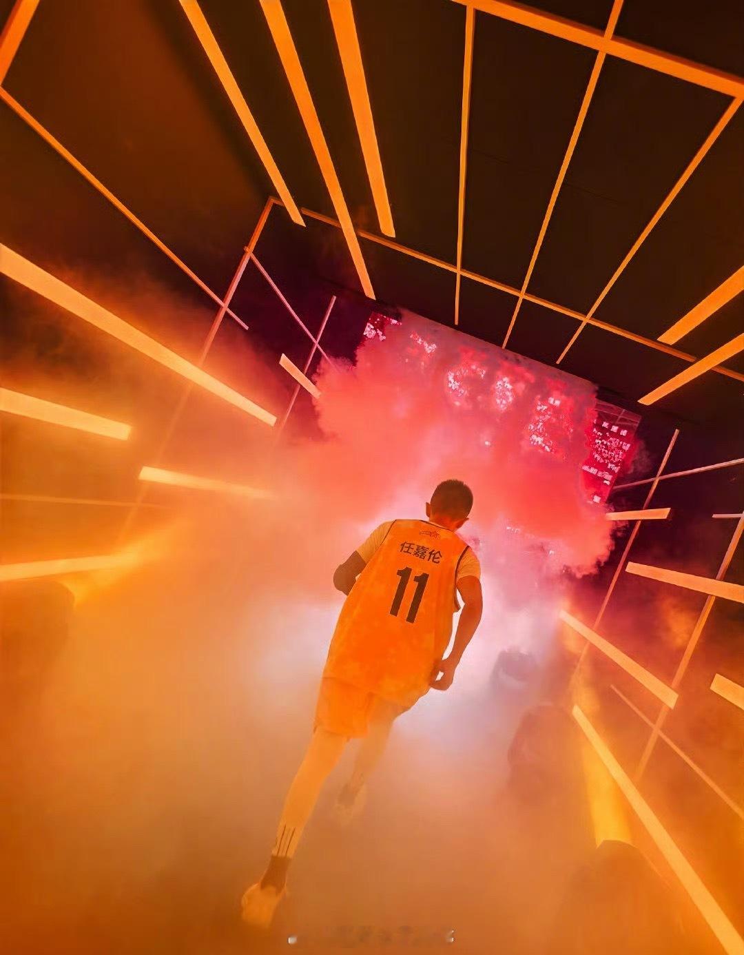 nba聚星名人赛现场任嘉伦家粉丝很多呀,红色蛮好认的[good]