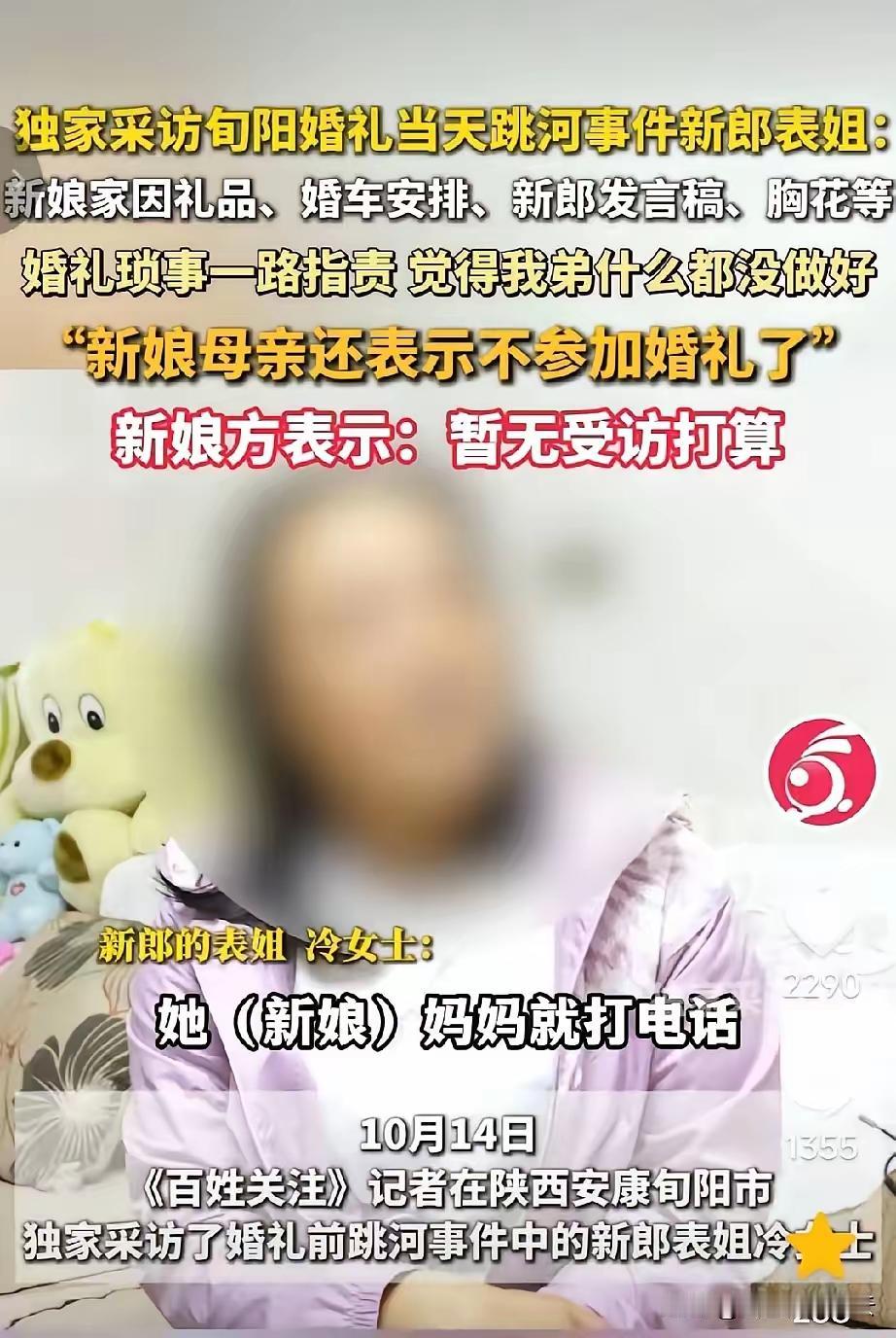 陕西新郎跳河原因找到了,新郎母亲透露细节。第一,女方要求新郎去女方家帮忙布置婚礼