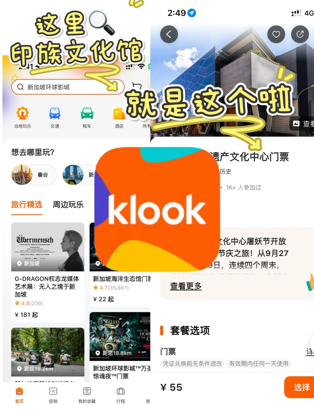 上Klook app预订,🔍新加坡印度文化遗产中心,下单步骤见P6。悄悄告诉你,现在有限时8折活动到月底结束哦!