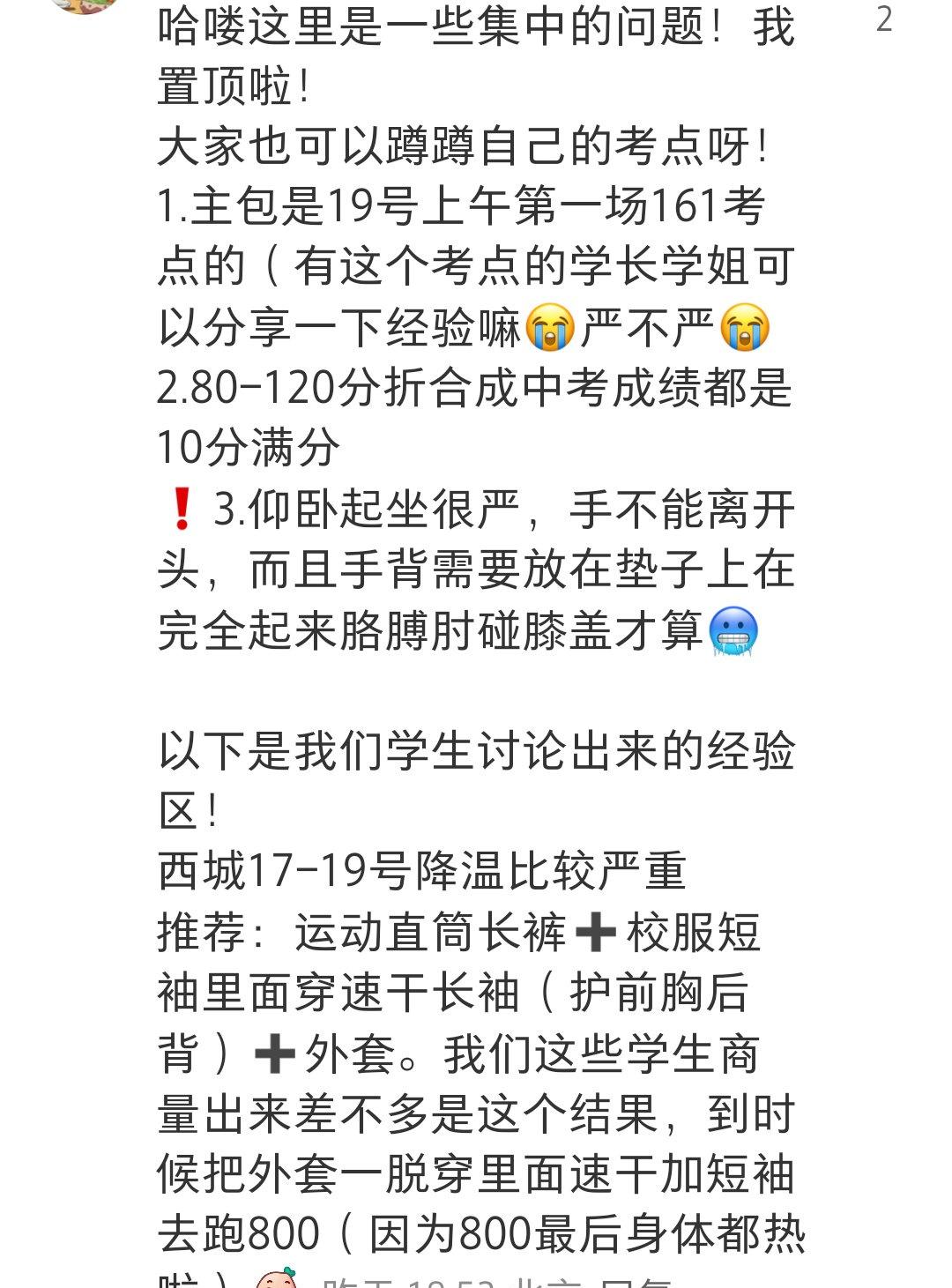 (下)八年级西城不同体测场地四中,八中,161的体测情况网友反馈整理。体测西城
