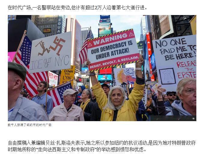 BBC头版头条大肆报道美国的“无国王”——反特朗普的抗议活动。 据说在纽约、华盛顿特区、芝加哥、迈阿密和洛杉矶数十万人聚集,反对特朗普的“无法无天”。可事实上,这种方式并不能使得特朗普下台,对他而言只是面子上过不去而已。比较有意思的是,不仅美国加拿大、欧洲许多国家也来凑热闹。 即使如此,最近的一项路透社最新的民意调查,仍有40%的人认可特朗普作为总统的表现;当然也有58%的人觉得他不行!