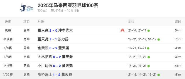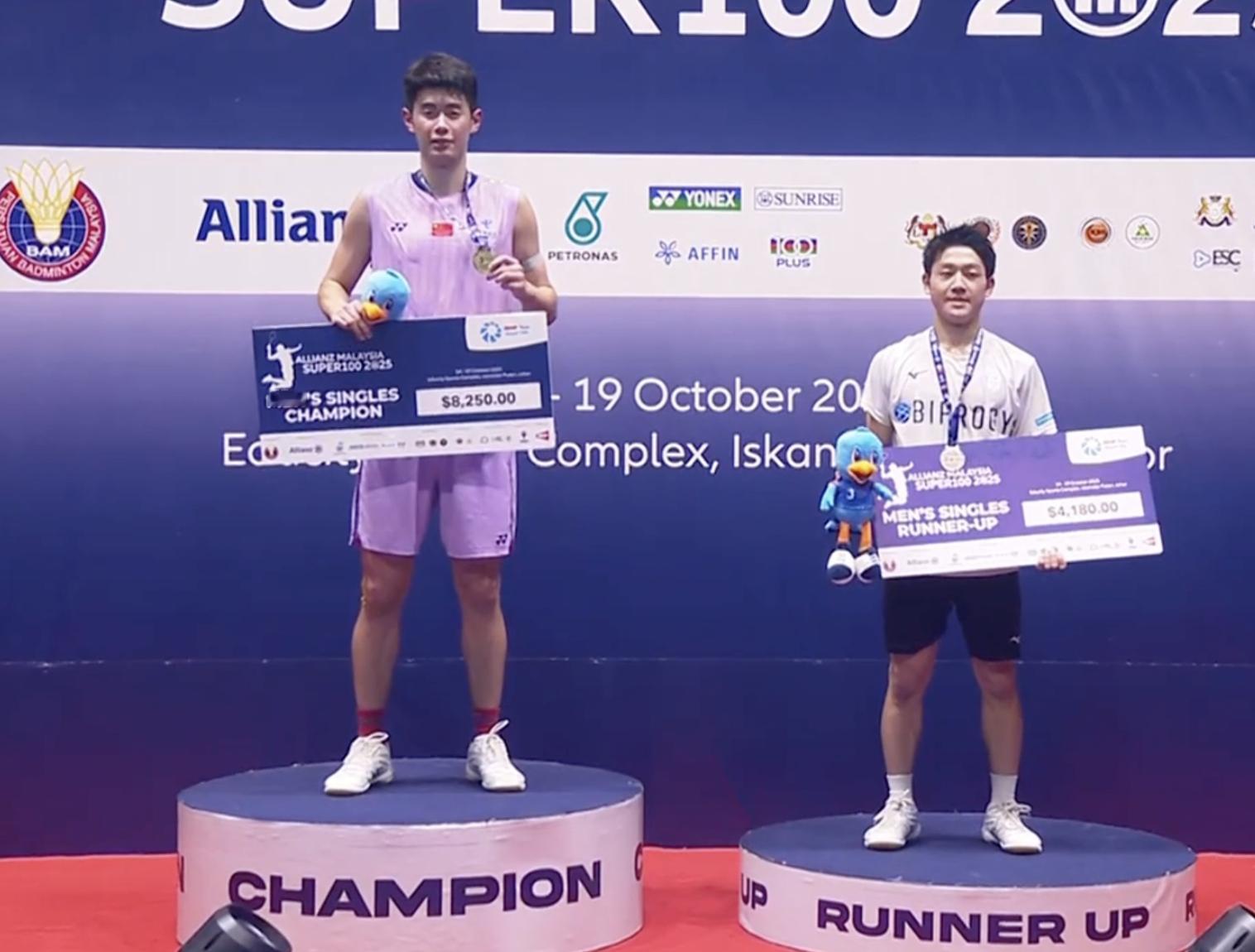 男单冠军:董天尧🇨🇳男单亚军:冲本优大🇯🇵恭喜两位!2025年大马羽毛球