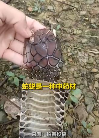 “这简直是捡钱啊!”10月15日广西来宾,一男子捡到一条3米多的巨型眼镜王蛇蛇蜕,比小臂还粗,他目测约有18斤,这条蛇蜕比较完整,估计能卖不少钱,网友:这也太吓人了! 10月15日的广西来宾乡间,秋阳把田埂晒得暖烘烘的,空气里飘着泥土和稻穗的混合气味。 一位上山散步的男子正低头踢着石子,忽然瞥见前方草丛里躺着条黑白格的长条物件。 男子表示,看着像个破塑料袋,想顺手捡起来扔了。 可脚刚碰到,那东西却没像塑料袋那样飘起来,反而沉甸甸的。 他蹲下身一摸,指尖触到细密的鳞片,干硬中带着点韧性,阳光底下纹路看得一清二楚。 这哪是塑料袋,分明是张完整的蛇蜕! 男子又惊又喜,费力把蛇蜕拖出来展开,两端一拉竟有三米多长。 最粗的地方比他的小臂还壮实,提在手里坠得胳膊发酸,目测下来得有18斤重。 是眼镜王蛇的皮!”他一眼认出那标志性的黑白纹路,当即忍不住喊出声。 这一幕被拍下来传到网上,很快引来了上千条评论,有人惊叹“胆子太大了”,。 也有人直犯怵,光看图片都起鸡皮疙瘩,万一蛇还在附近呢?” 这看似“天上掉馅饼”的发现,背后藏着的可不只是“捡钱”的惊喜,还有关于毒蛇、药材和法律的多重门道。 从蛇蜕的尺寸和完整度来看,这绝非普通蛇类留下的。 广西林业部门的专家后来分析,眼镜王蛇蜕皮时会找安静湿润的地方,等旧皮软化后从嘴巴开始往外钻,环境合适才能蜕得这么完整。 从这张3米多长的蛇蜕推算,原蛇体长至少超过4米,属于成年个体。 要知道,眼镜王蛇是我国最大的毒蛇,单次排毒量能达到银环蛇的二十多倍。 男子之所以喊“捡钱”,是因为蛇蜕在民间一直被当作药材,还有个好听的名字叫“龙衣”。 上海市中医医院的朱焜副主任医师解释,传统上蛇蜕确实用来清热明目、治湿疹这类皮肤病,以前还有“乌蛇止痒丸”这样的中成药会用到它。 但别以为这东西真能随便卖钱,现在政策管得严着呢。 根据《野生动物保护法》,蛇类属于有重要生态价值的野生动物,它们的衍生物包括蛇蜕,都不能随便出售或利用。 现在蛇蜕只能在少数有资质的医院作为药材使用,私下收购、买卖其实都涉嫌违规。 其实抛开“值钱”的滤镜,这张蛇蜕的真正价值,在于它对生态研究的意义。 生物学专家说,眼镜王蛇作为生态系统里的关键物种,活动范围变化能反映气候和环境的改变。 这次在来宾发现这么大的蛇蜕,为研究它们在桂中地区的分布提供了重要线索,广西林业部门已经计划开展专项调查了。 男子当初喊出的“捡钱啊”,终究是对野生动物资源的片面理解。 这张3米长的蛇蜕,既不是“天上掉的馅饼”,也不是能随便变现的“宝贝”。 它背后是眼镜王蛇的生存智慧,是中医药的传统认知,更是法律划定的红线。 就像网友说的,遇见这种东西,与其想着“捡钱”,不如先退一步保证安全,真有疑问可以找林业部门来处理。 毕竟,野生动物及其衍生物的价值,从来不在能卖多少钱上,而在它们维系的生态平衡里。 信息来源:南国早报2025-10-16发布视频