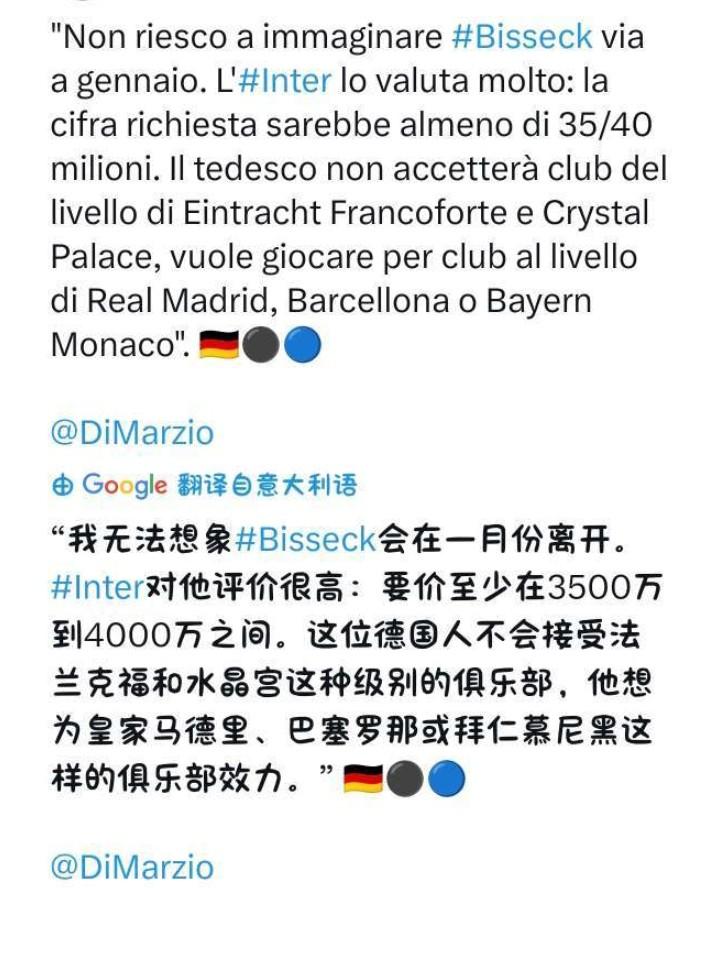 🇮🇹 国米买的外宾真是牛🐮Ⅹ,前有阿斯拉尼这不去那不去送不走,现在又有比赛克连英超都不去,世界上找不出第二支被外宾牵着鼻子玩的国米这种LS俱乐部
