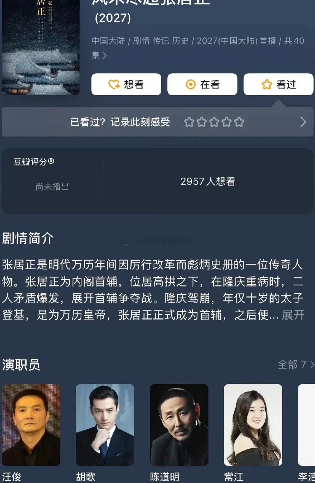 张居正开通官方账号,中生的大饼,网传阵容:胡歌、陈道明、出演此剧