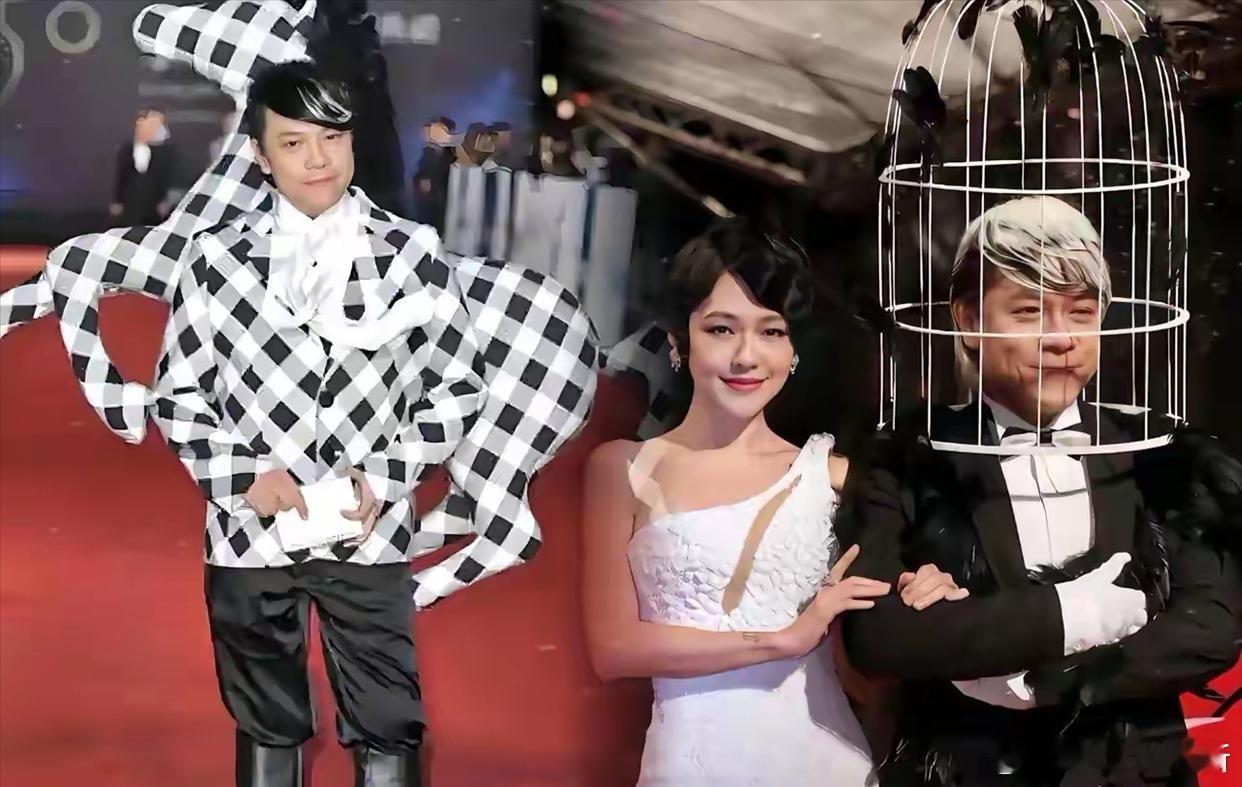 红毯上这俩活宝绝了!小S一身白裙俏生生,旁边蔡康永顶着个鸟笼就来了,黑白羽毛一配,跟玩cosplay似的。