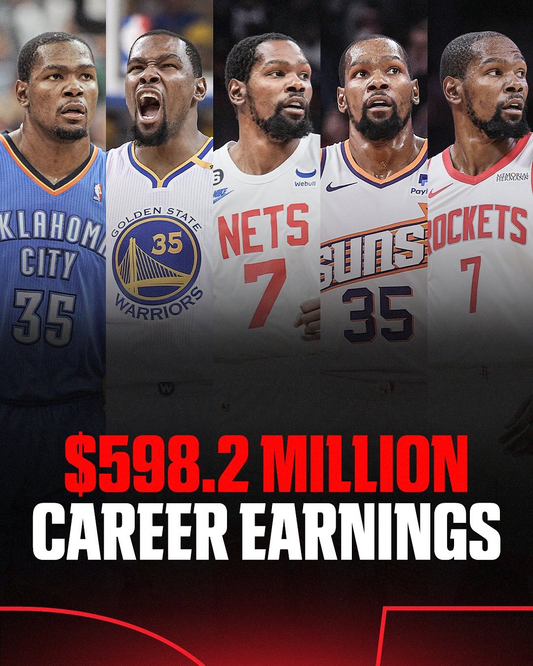 这个续约定下来以后,杜兰特超过詹姆斯,总薪水为5.92亿美元,NBA史上最高!