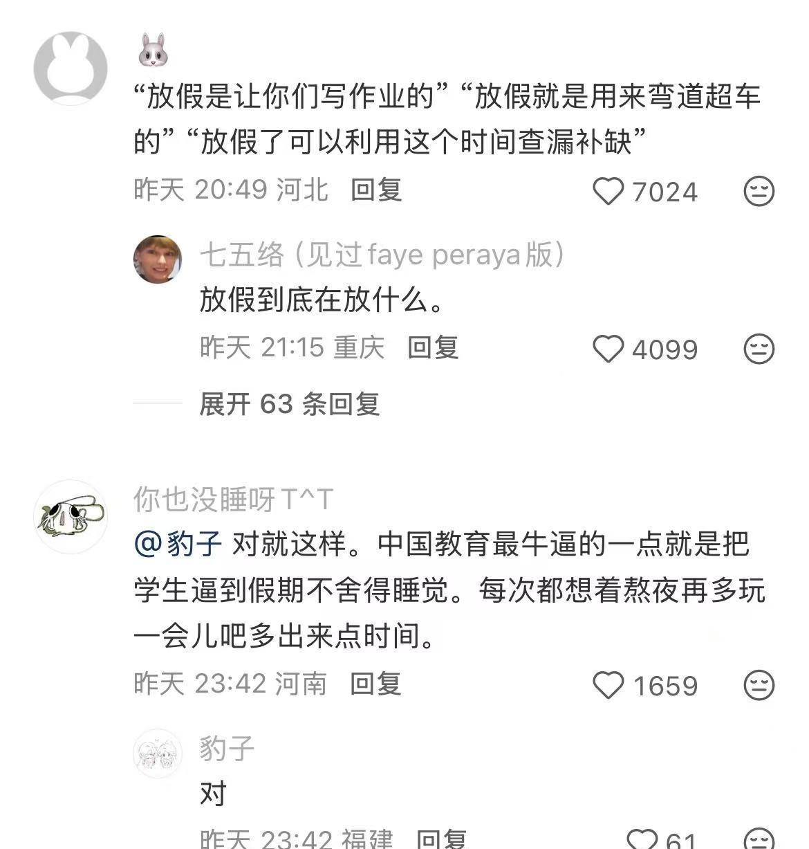 中式教育里好像没有“休息”的概念....