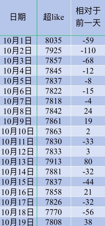昨天的超喜欢和今天的超喜欢底数都是超过前一天的哟!非常棒叻!就昨天的发帖人数下降了