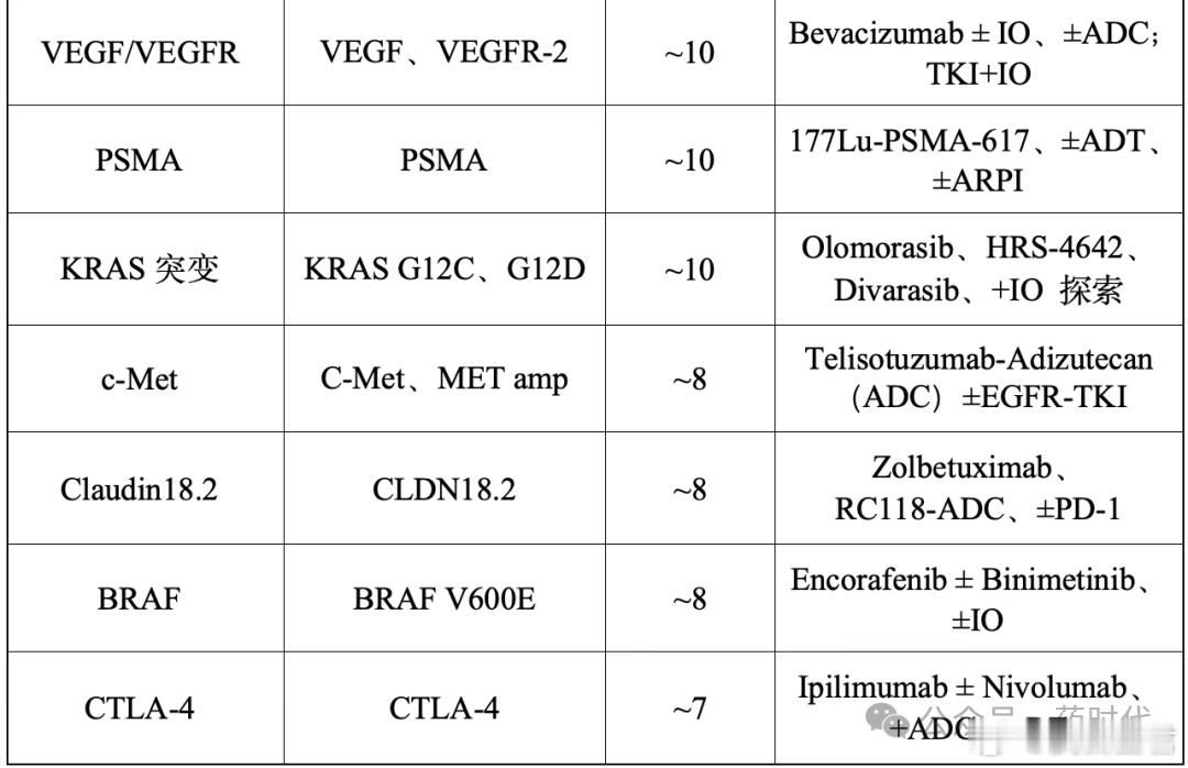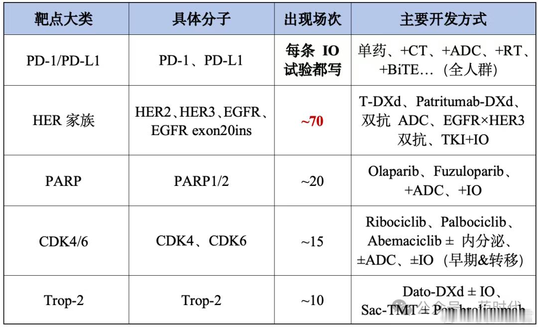 表1 ESMO讨论频次较高的12类靶点及主要开发方式趋势速览: