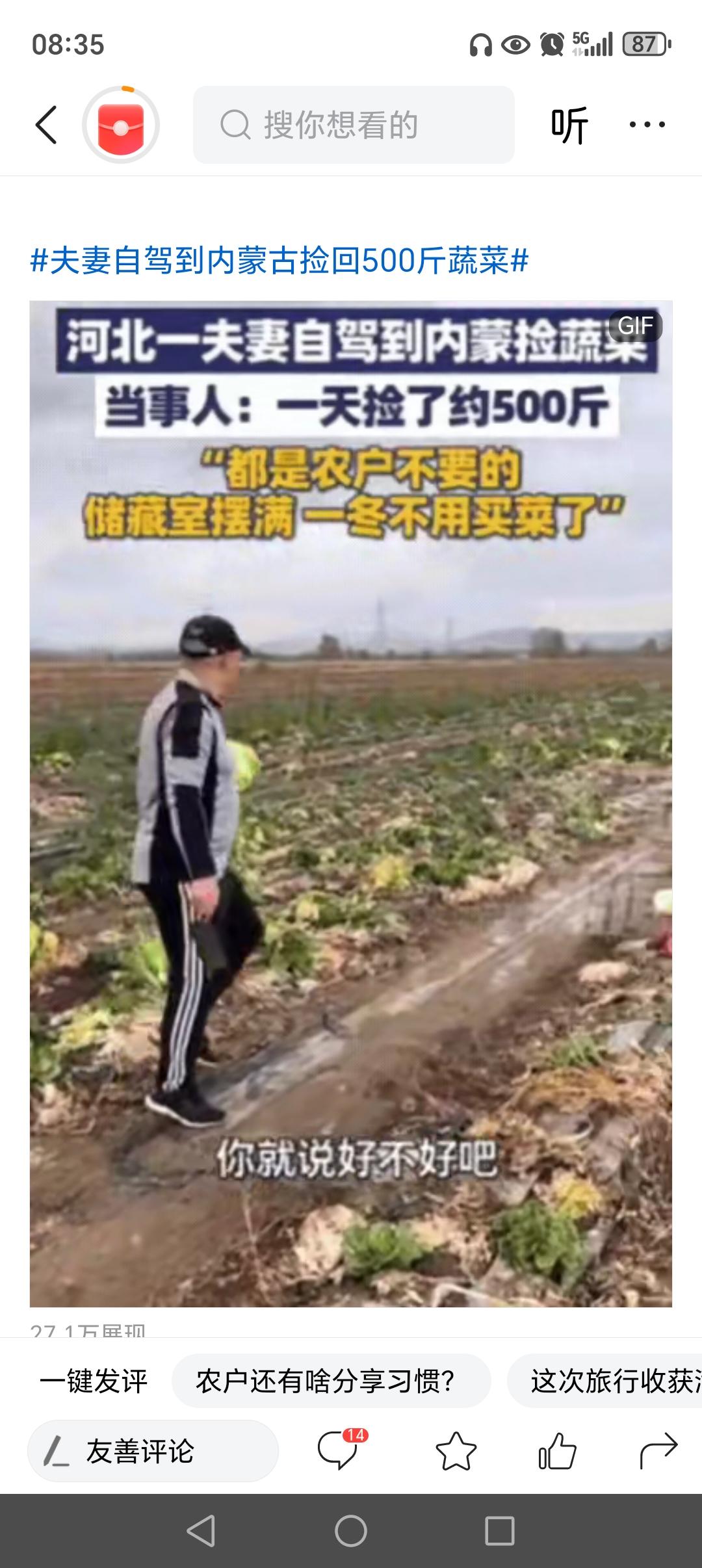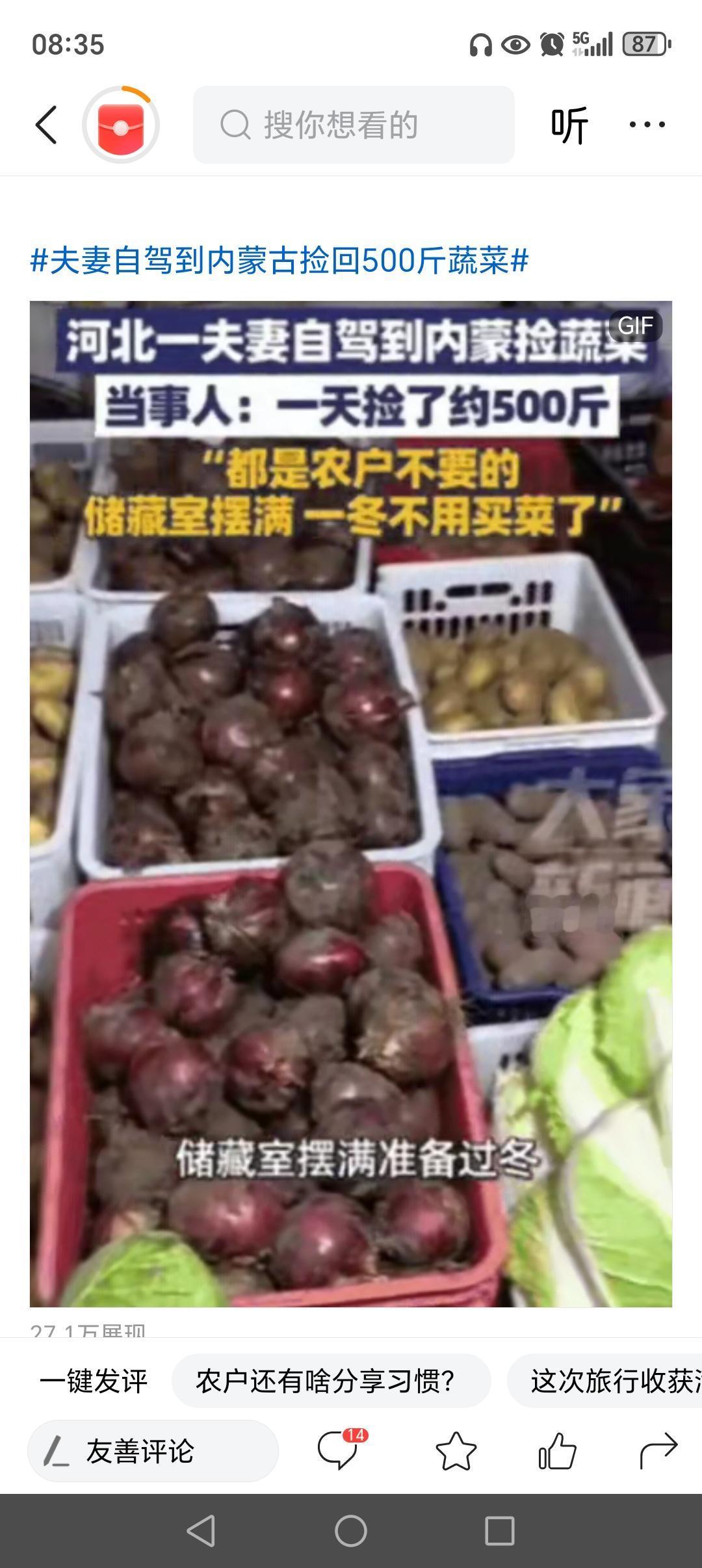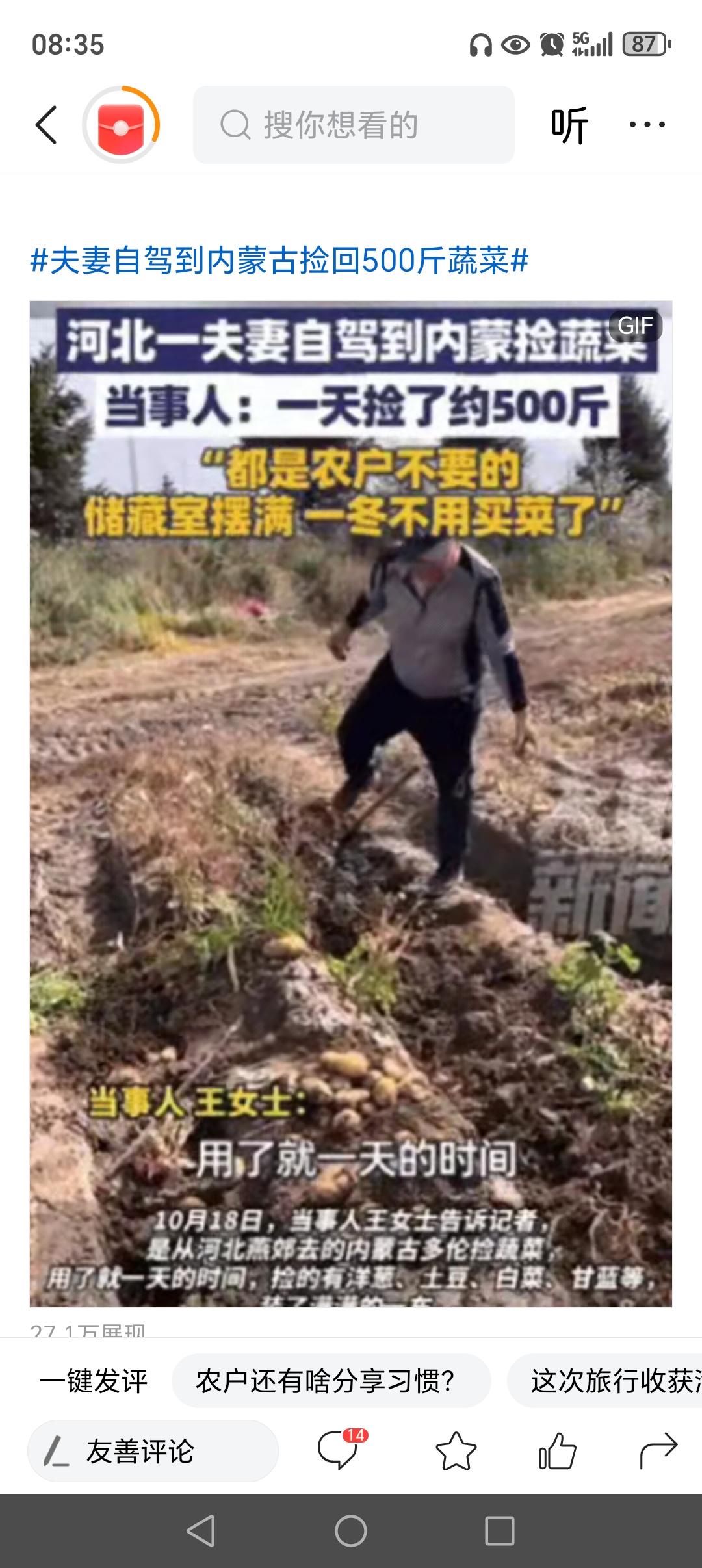 河北一对夫妻去内蒙古玩,发现路边地里有很多蔬菜、土豆,竟然直接跑地里捡,农户发现后,不但不阻拦,反而催促他们:快捡吧,随便捡!原来,这些蔬菜都是农户不要的,就算他们不来捡,也是放在地里烂掉,夫妻俩1整天,捡了500斤,整个冬天的蔬菜都有了!网友:这样挺好的,不浪费粮食! 然而,这个看似简单的“捡蔬菜”事件,却折射出我们社会中许多鲜为人知的温暖与困境。或许有人会觉得这是“随手捡”的小事,但背后却隐藏着一种深深的善意和对资源的尊重。农户的催促,不仅仅是为了鼓励别人不要浪费,更是对土地和粮食的珍惜——他们明白,粮食来之不易,每一粒都凝结着农民的汗水和希望。 这件事让我们不禁反思:在高速发展的今天,我们是否还记得那些被遗忘的角落?那些被视为“废弃品”的蔬菜,为什么会变成“废物”?难道我们就不能用一种更智慧、更环保的方式去对待自然赐予我们的资源?或许,正是这些不起眼的蔬菜,才提醒我们要珍惜每一粒粮食、每一片土地。 更令人动容的是,这对夫妻的行为激起了许多网友的共鸣。有评论说:“这才是真正的节约精神。”有人感慨:“看到他们的善意,心里暖暖的。”还有人提出:“如果每个人都能像他们一样,少浪费一点,多珍惜一点,这个世界会不会更美好?”这份善意和行动,不仅仅是对粮食的尊重,更是对生活的热爱和责任。 然而,也有人会问:如此“随意”地捡蔬菜,背后是否隐藏着某些隐忧?比如农户的无奈,或者农产品的“剩余”问题。其实,这正是我们社会必须正视的议题——如何建立更合理的农业生产与流通体系,让农民的辛勤劳作不被浪费,让普通人也能更方便地获得优质的食品。 这件事让我们看到:在这个充满压力和竞争的时代,善意和节约依然可以成为一种力量。它激励我们去反思,去行动——或许一粒蔬菜的价值,早已超越了它的价格,而成为一种传递温暖、倡导环保的象征。 所以,下次当你看到那些被忽视的“废品”,别急着否定。或许,它们正等待着被“发现”的那一刻,变成我们生活中的一份温情。让我们学会像那对夫妻一样,用行动传递善意,用心去珍惜每一份资源,也让这个世界变得更加美好。 内蒙土豆 户外捡土豆 内蒙古捡🥔