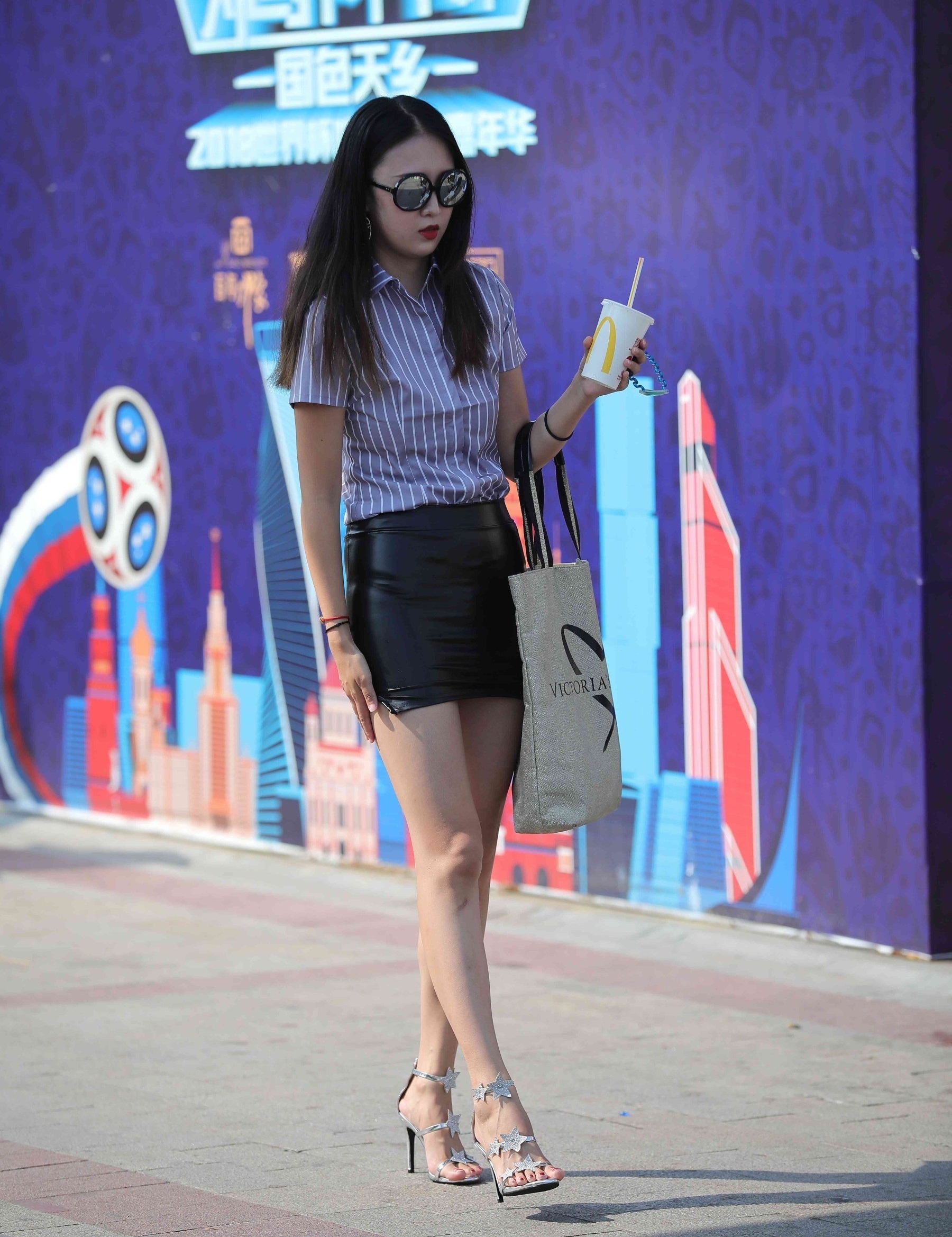 🌞阳光正好,街拍新宠来袭!一件简约条纹衬衣,搭配紧身黑皮裙,轻松打造都市辣妹风!👗 👀看这位小姐姐,条纹衬衣利落大方,黑皮裙紧致勾勒完美曲线,每一步都走出自信与魅力!👠 💼手提大包,随性又不失时尚感,无论是逛街还是约会,都能成为焦点!👜 🔥这样的穿搭,不仅显瘦显高,还超级有范儿!你也快来试试,让时尚触手可及!💪