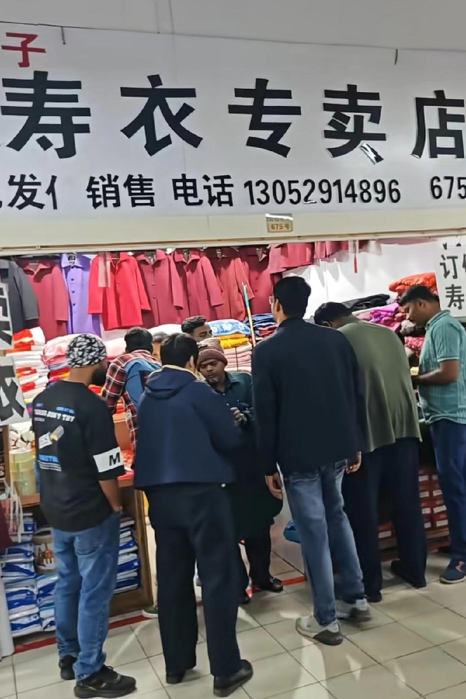 上街撞见超离谱又搞笑一幕,一群老外扎堆在寿衣店,眼睛放光地挑衣服,还兴奋地试穿,嘴里不停嘟囔着“amazing”! 店员都懵圈了,估计心里直犯嘀咕:这啥操作?这画面简直太有喜 感,让人忍不住多看几眼! 老板也是只认钱,也不跟人家说清楚,老外应该是不知道 唐装,主打性价比,穿着上大街,回头率100%。寿衣店老板这辈子估计都没想到,有一天他家生意能来这么多人每人都买。没关系,人家外国人没有那么多讲究,去世的人能穿的活着的人也能穿!主要是寿衣尺寸够大,老外块头大在中国难买的到。想象一下,一个老外穿着寿衣走在热闹的大街上!洋相还是只能洋人出 中老外的审美中这些有中国元素的图案和款式就是他们标新立异博人眼球的纪念品,而且寿衣略懂中文皮毛不懂汉语精髓的会以为和长寿相关,然后可能回国他们会当礼物给亲人送