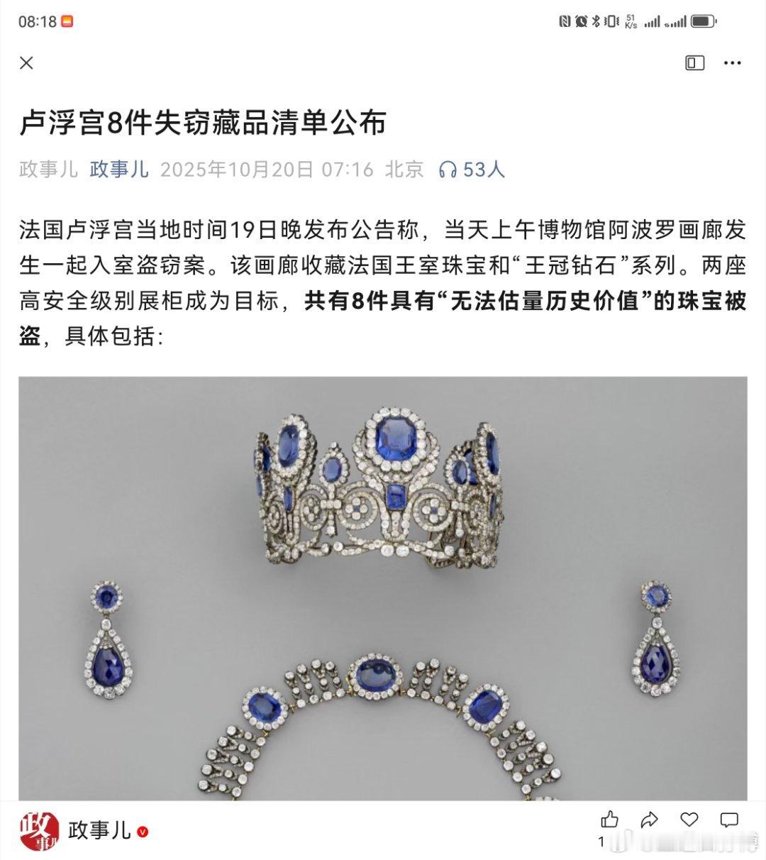 想象下如果这事儿发生在国内,估计馆长,管安保的副馆长,安保部门负责人,当值安保等会被立马问责,gong an 会被要求必须 在短时间之内破案抓住嫌疑人并保证藏品万无一失,并且完成。