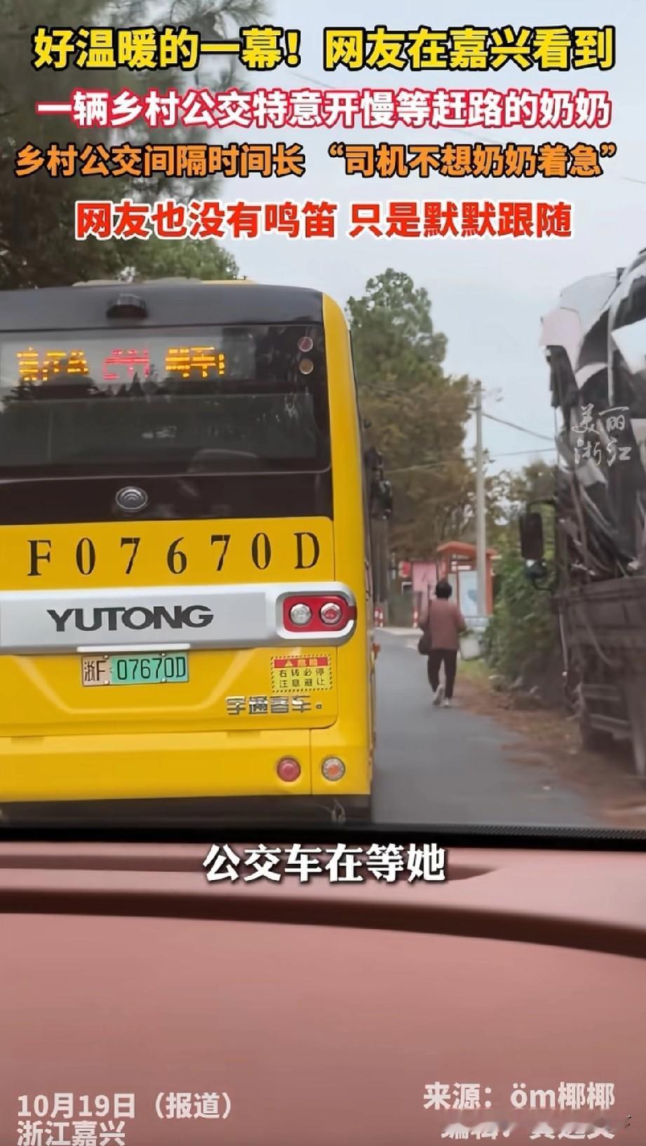 浙江嘉兴城乡公交的小事,却能让全国网友大范围在讨论 美丽浙江报道的一个新闻,浙江省嘉兴市,农村小路上,一辆城乡公交慢慢的在前行,就是为了等一位赶车的老奶奶。 这个可以说是非常小的新闻了,却能让全国网友在大范围讨论,只因为大家都是看的到,感受的到。 城乡公交区别于城市公交,很多线路一个小时,两个小时才有一班车,毕竟客流量小,老年人又不会用手机,也看不懂行车路线,只能估计车辆时间,有的老年人腿脚不好,错过一班公交,就需要等很长时间再有车。 浙F07670D公交驾驶员就非常有爱心,有耐心,开城乡公交不仅仅是需要驾驶技术,更需要对老年人的关爱,而不是大声叱责,或者当做看不见直接开过去。浙江公交站台 乡间公交 农村公交客运 嘉兴城市电车 城乡公交广告 城乡公交车随拍