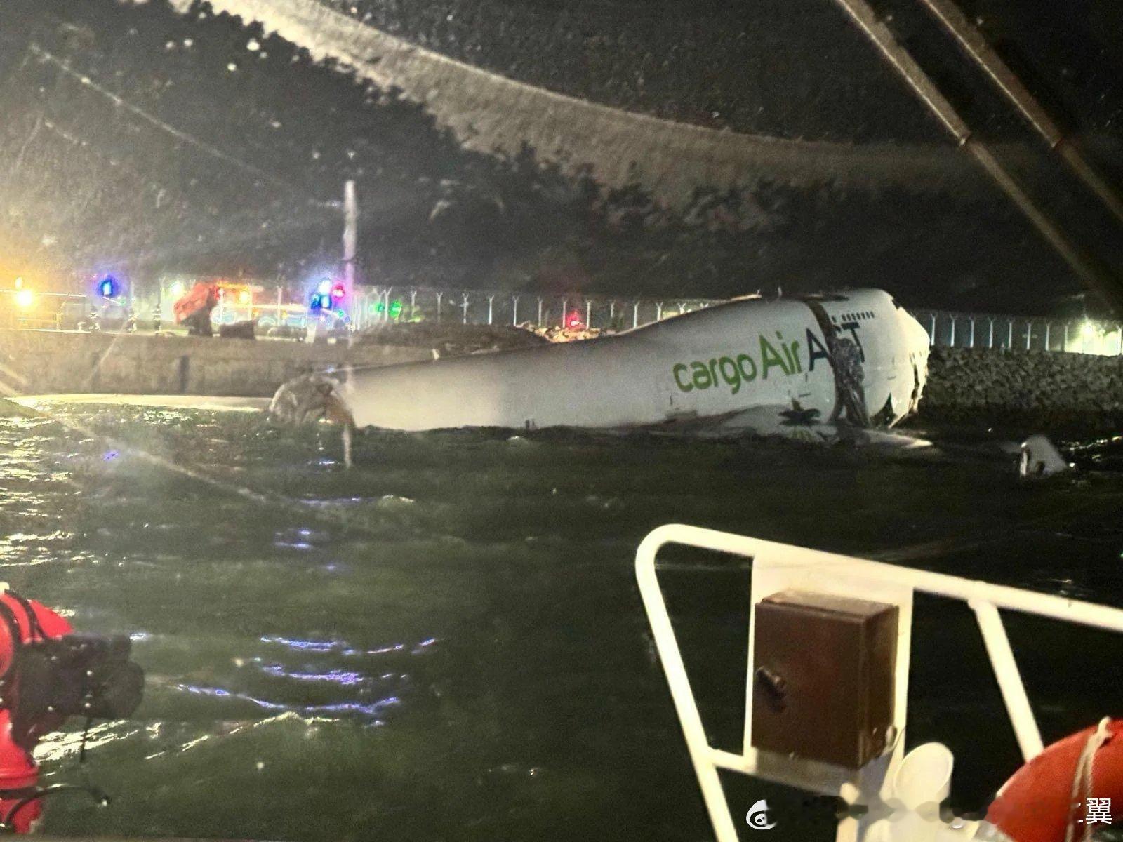 一架土耳其AirACT的波音747-400货机在香港国际机场冲出跑道,坠入大