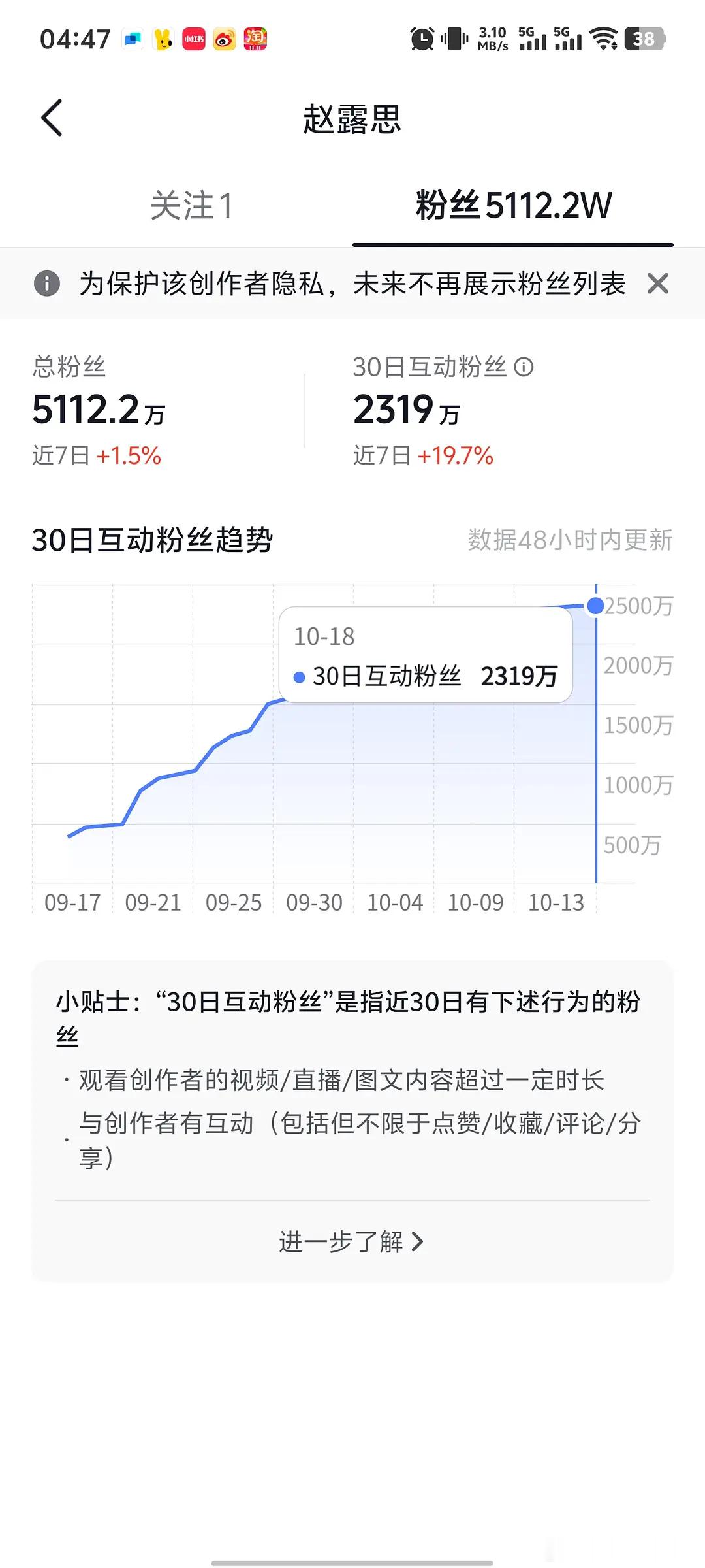 鱼的抖音30日互动粉丝数据竟然只有可怜的10几万,相当于活粉几乎全跑光了。还不够