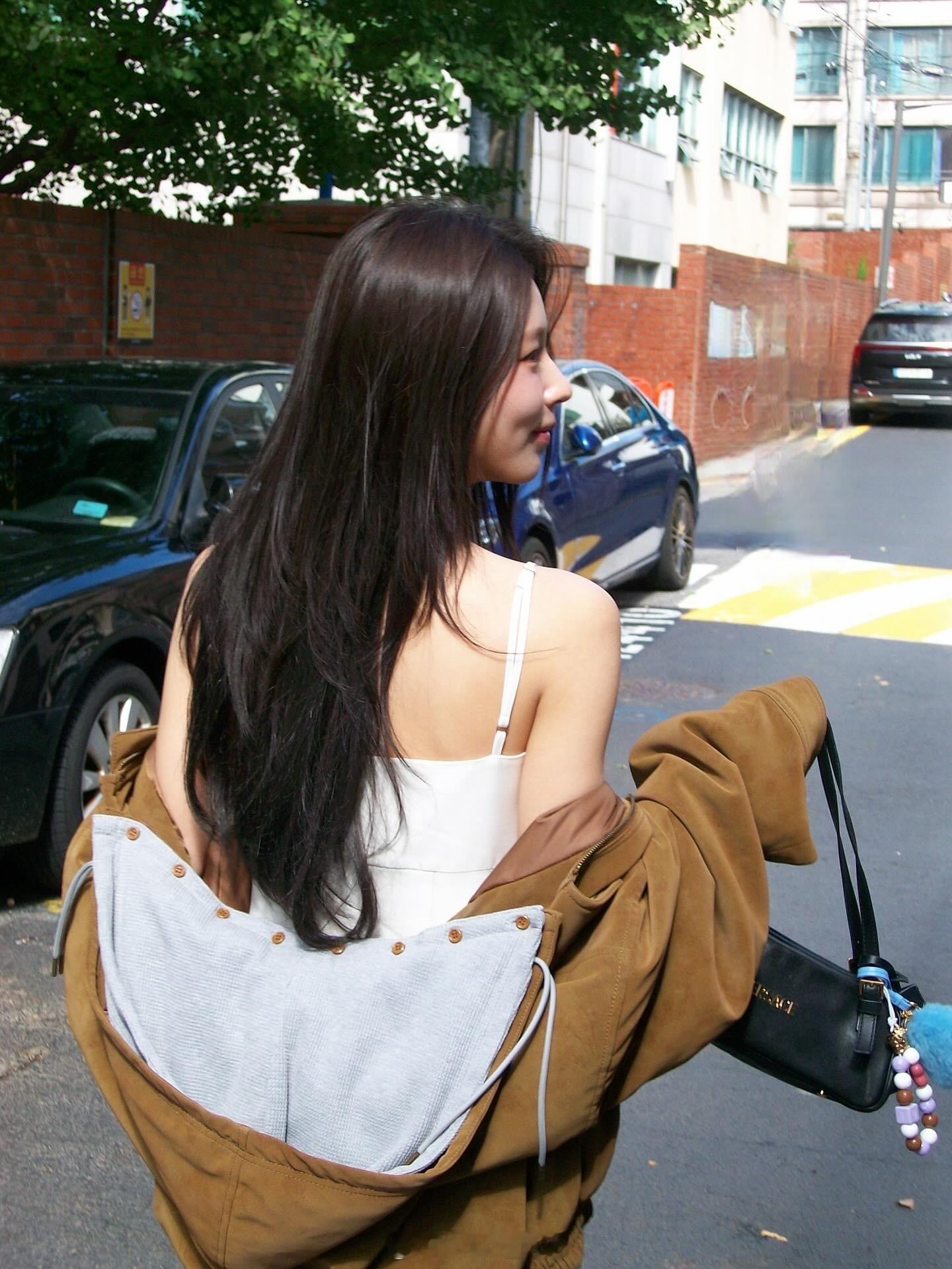 张天爱跟素人合影,胯真的好宽,大宅院似的
