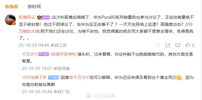 这次钊哥确实搞错了,华为Pura80系列销量我也参与讨论了,正经谈销量绝不至于被封禁!他过于阴谋论了,当华为没正经事干了 ?一天天在网络上巡逻?高强度出击?