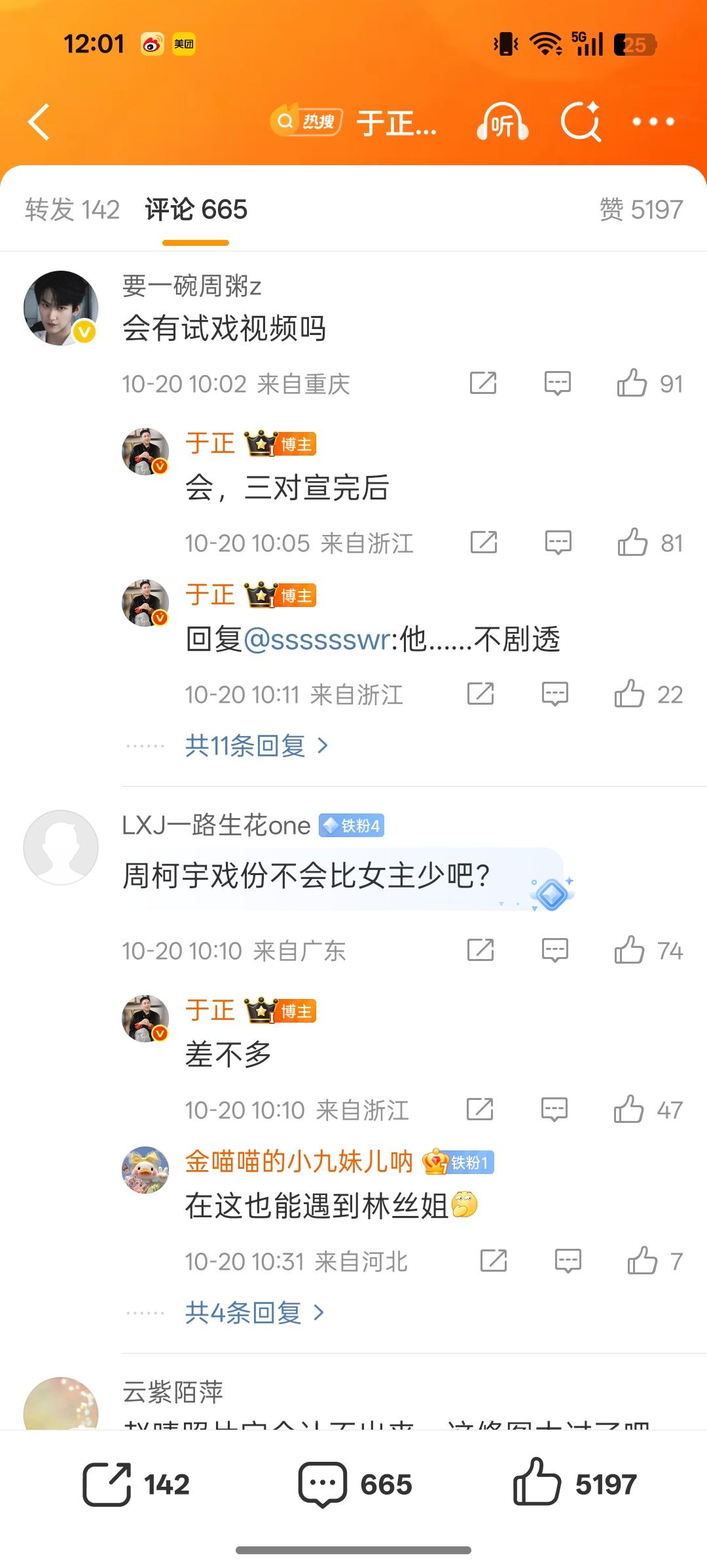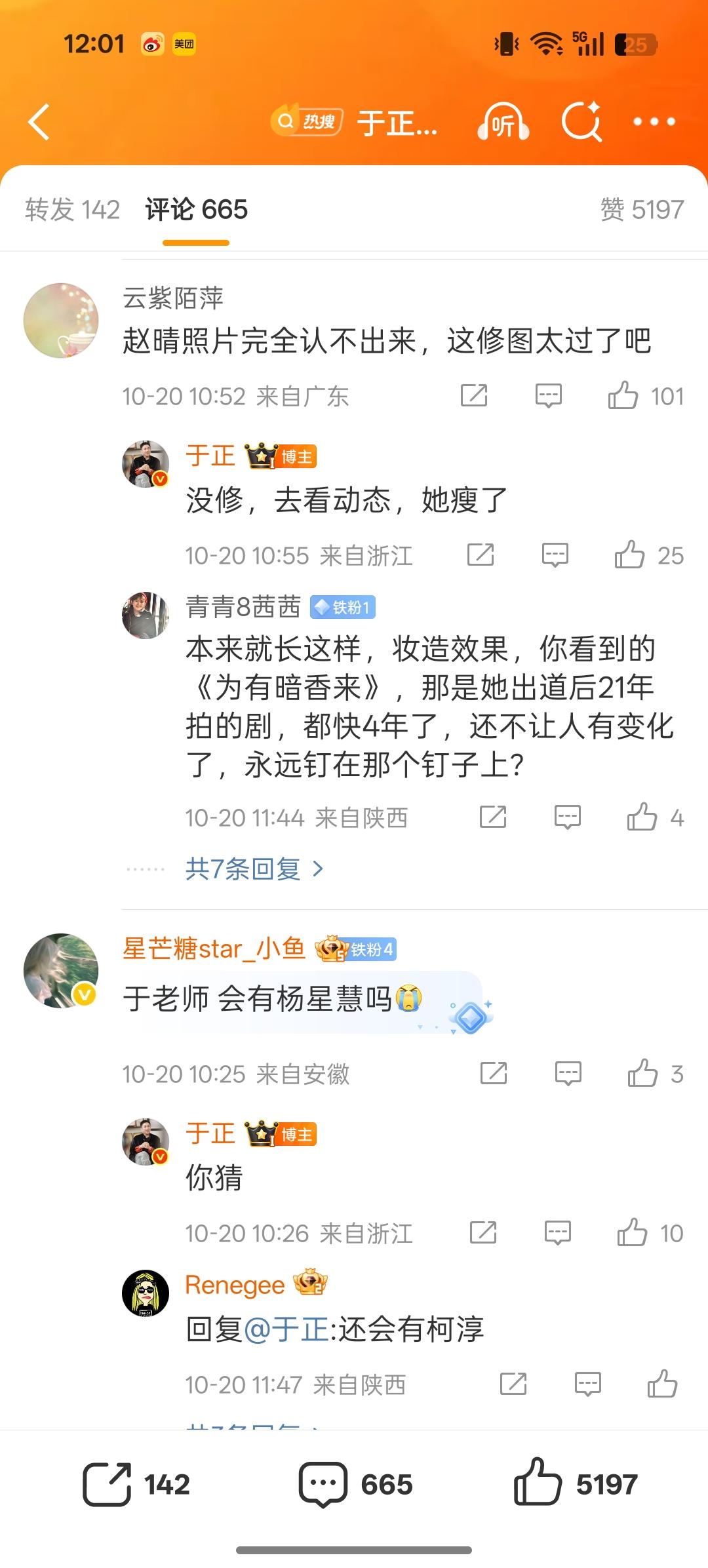 于正发文,回应选择周柯宇 赵晴的理由! 首先于正直接表示:告诉桃花不用开了,我等的人已经来了。 随后官宣了金吾不禁的相关角色,如周柯宇 ,赵晴。 面对之前外界的猜疑,于正也说到,选择他们的理由特别简单:演技好、贴角色、有cp感,前后无数次的会面、试戏、搭配,终于圆满。 最后于正感谢爱奇艺 给他和新人机会,他将用毕生所学,把这个好看的不得了的剧本变成明年影视圈的新一轮传奇。 并且于正也在评论区回应网友的留言,对于有认为赵晴的图是不是修的有些过了? 于正也回复说:没修,去看动态,她瘦了。