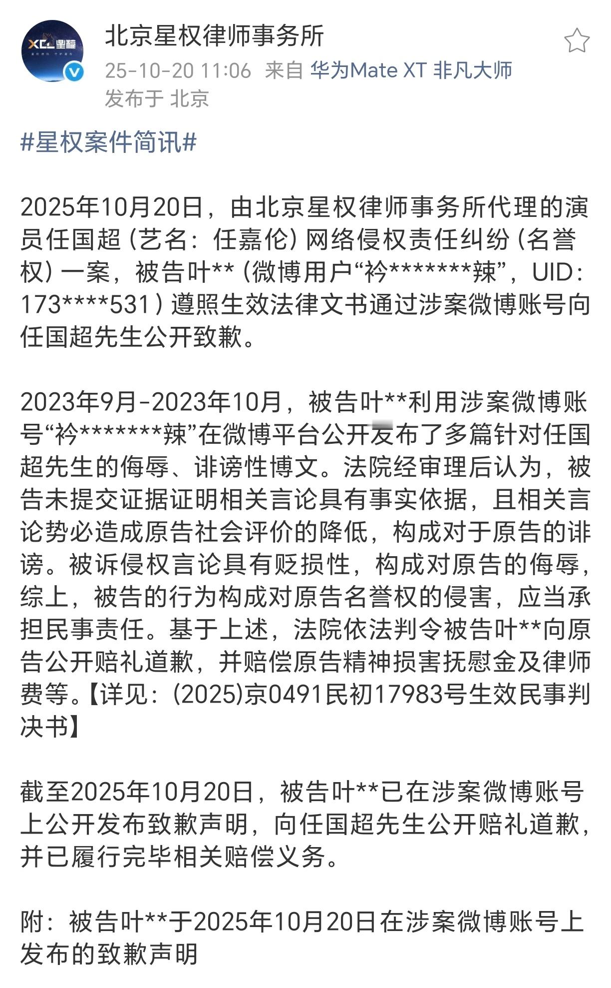 任嘉伦告黑胜诉,而且告的诽谤。