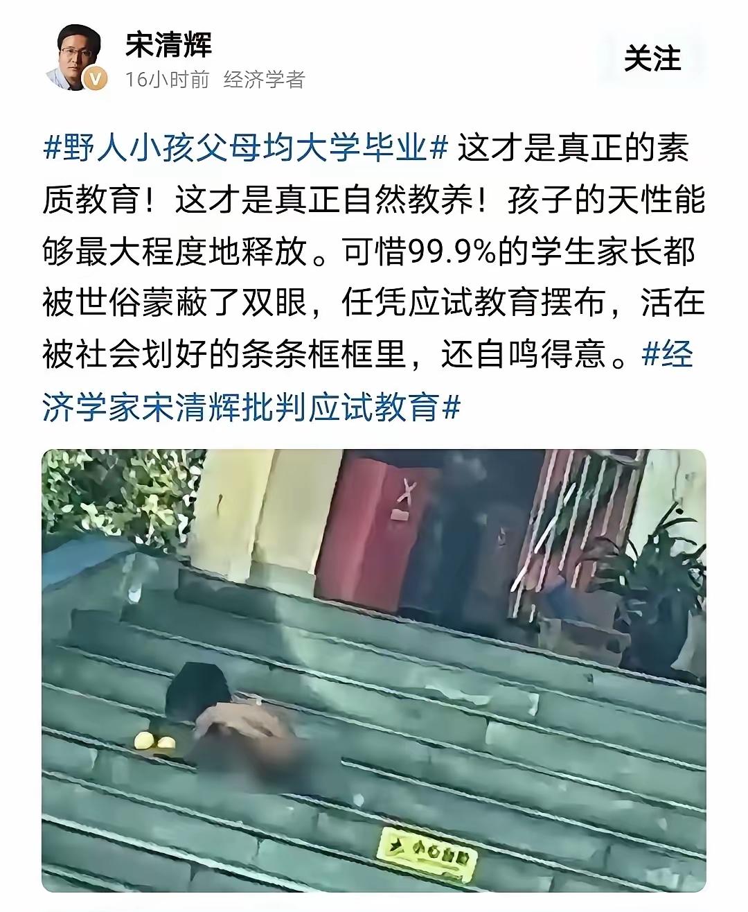 令人惊骇! 1 自然教育,也不能回归原始吧?贴近自然,是以人的方式去贴近,而不是以物的方式,或者以兽的方式。人跟动物的不同,在于理性,人能思考,放弃了这一点,人进入自然,跑不过猎豹,飞不能及鸟,视力不及狼狗,爬不如猴子,根本无法生存?难道这是自然教育? 2 这跟应试教育没有关系。你也可以上学,可以少做试卷,少做作业即可,但是不让孩子接受教育,那以后怎么能进入社会? 自然,是人化的! 人化的自然,是和谐的,互相的!