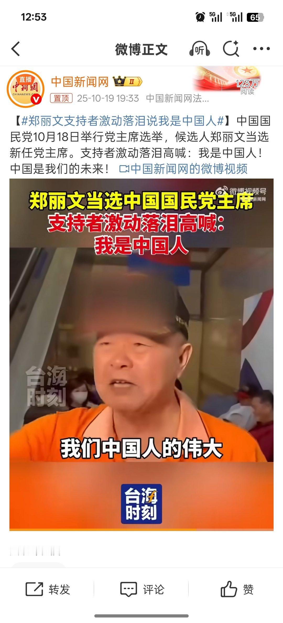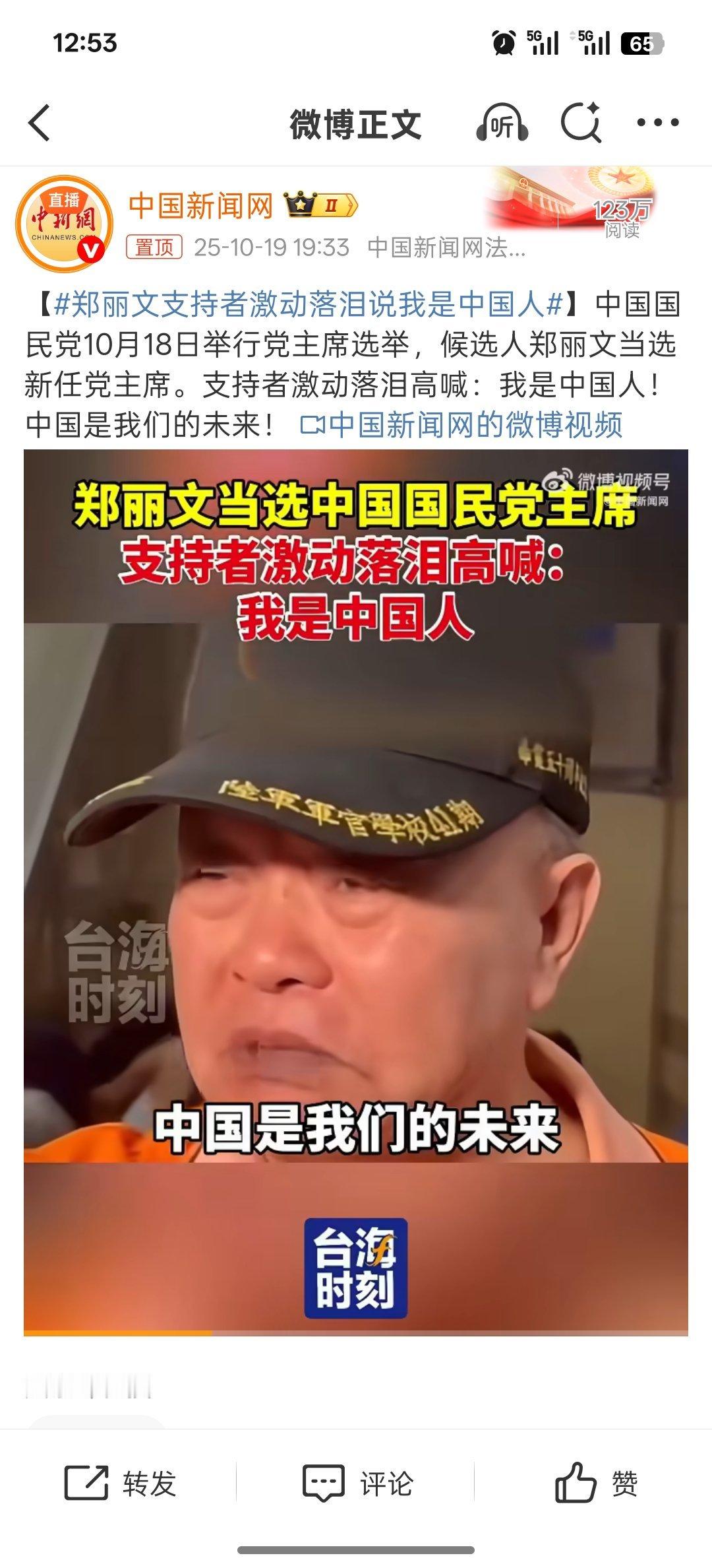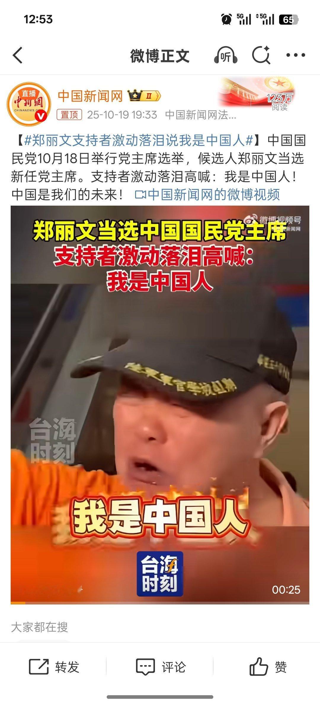 郑丽文支持者激动落泪说我是中国人我是中国人!欢迎回家!