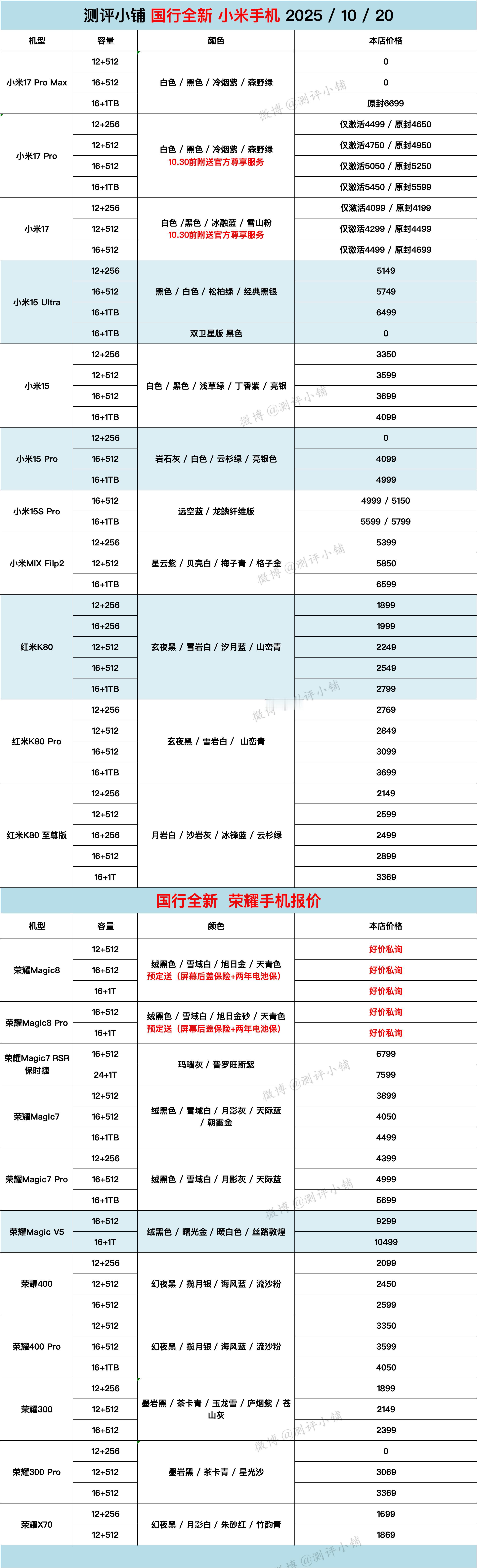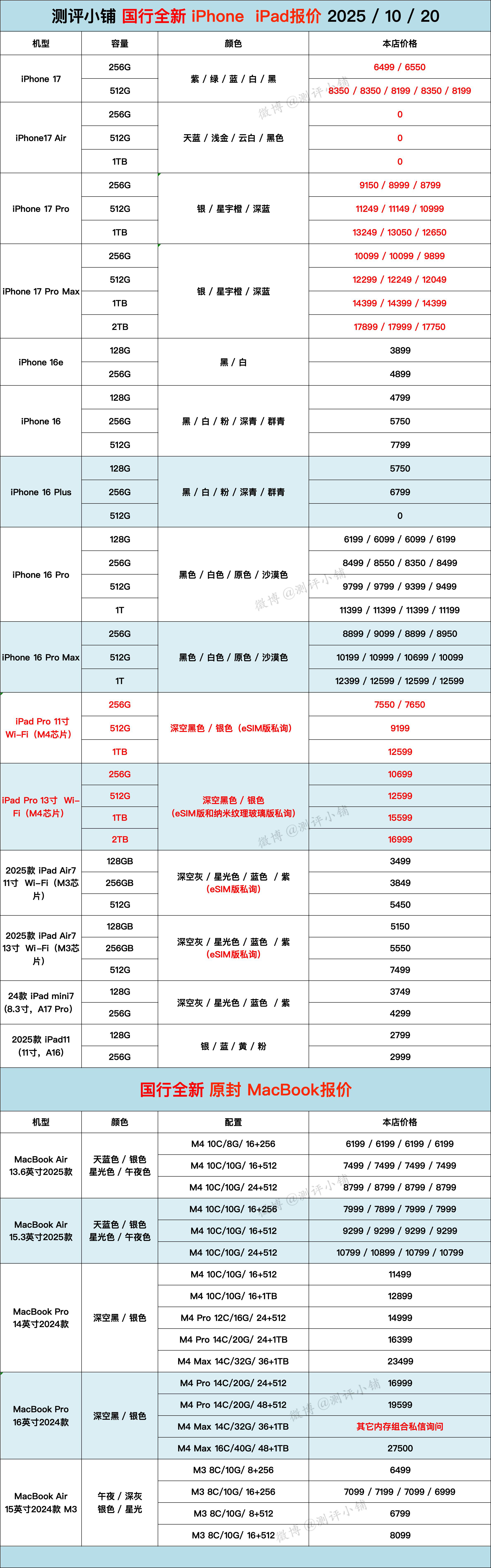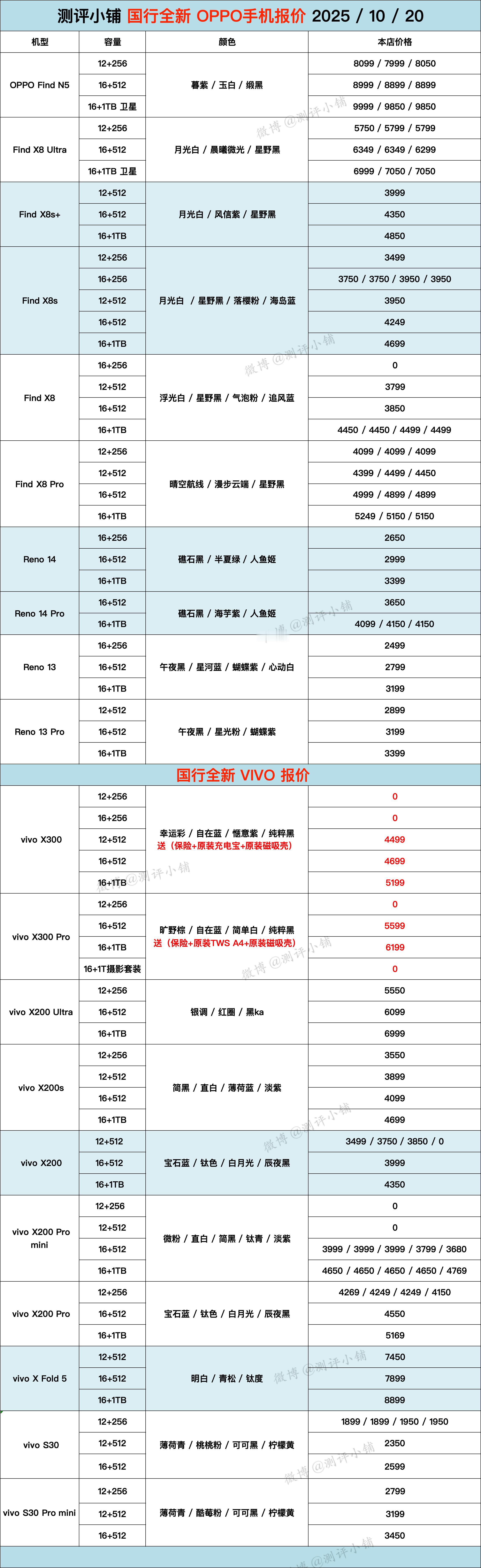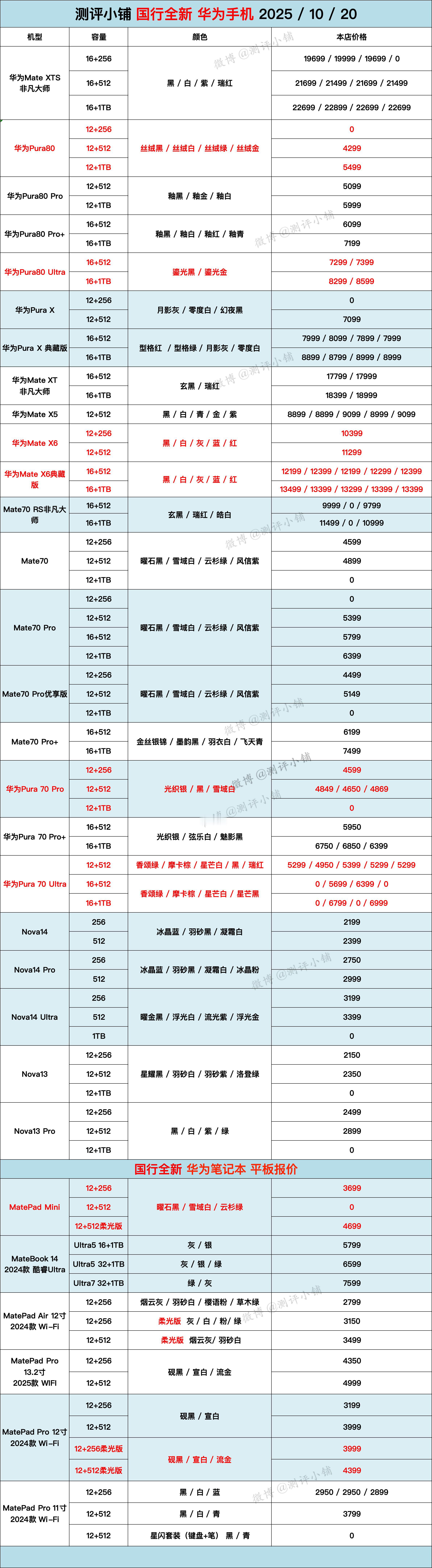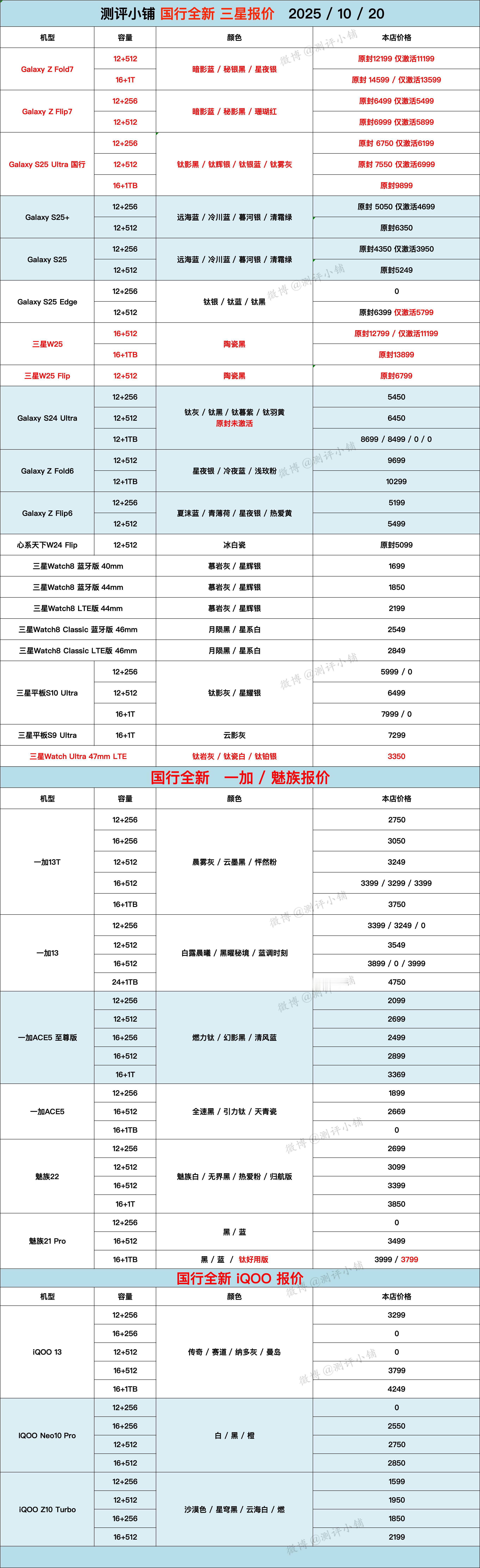 iPhone17系列,华为Mate XTs,OPPO Find X8全系列,一加13系列,三星S25 Ultra、Z Fold7、Z Flip7,苹果耳机等更新。