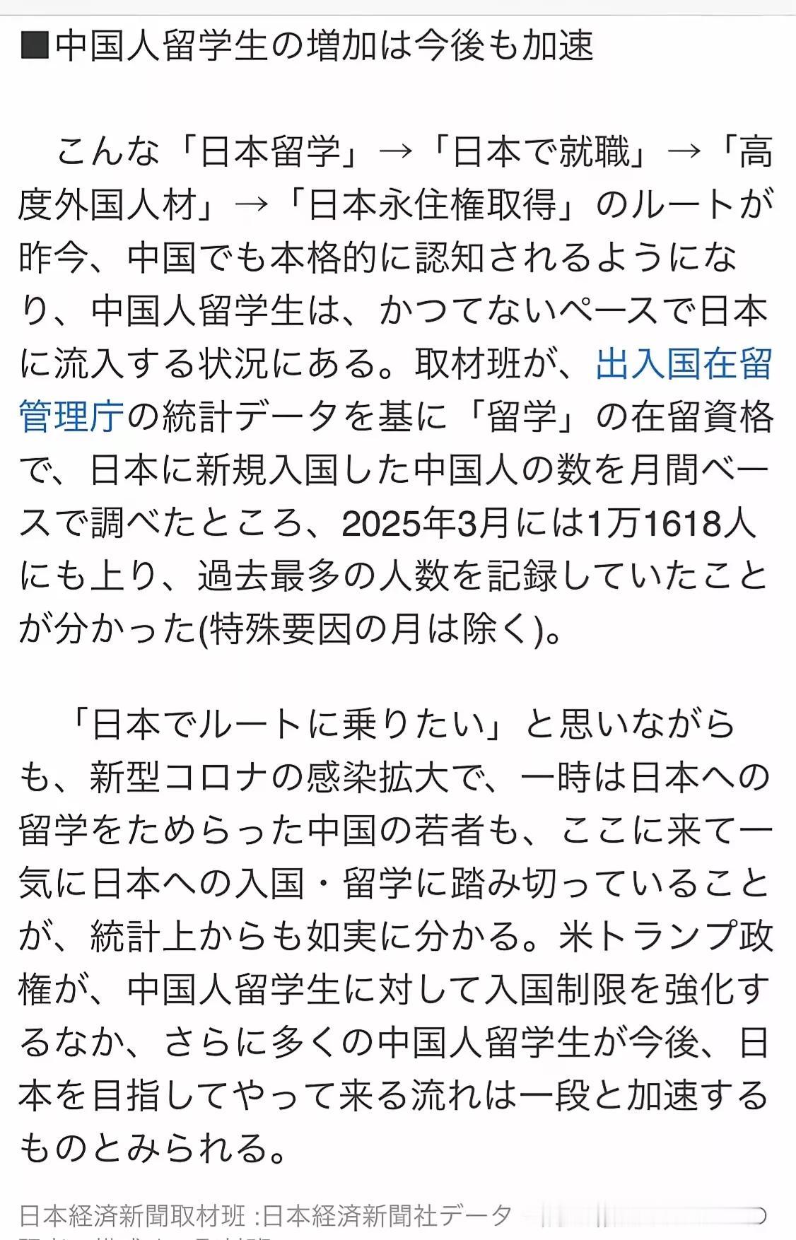日本出入境管理局的报告说,中国入境和留居日本的年轻人常年稳居日本移民榜最前列。仅2025年3月,就有一万一千六百多名中国年轻人以"留学生"身份常居日本。 其实日本对中韩越三国向日本移民并不介意,三国同处筷子文化圈,文化相近,荣辱观一致,融入没有阵痛。 日本人对南亚人、非裔移民就极有戒心,甚至对白人移民日本也比较苛刻,准入条件很高。 日本对东亚人的相对"友善"其实也属无奈之举,因为老龄化太严重了,整体劳力饥渴下,文化人种同质化最高的筷子文化圈,自然是最佳选择。 不过,中国人移民日本太猛,中国民间确实讨论很多。历史与现实纠结,这是一个无法回避的现实。 (图1:日本姑娘麻琴近日与四川小伙西柚在四川老家举行婚礼。西栖就是以留学身份常居日本的中国移民。 图2:日本出入境管理局关于中国移民的报告,显示仅今年3月就有11618名中国人以留学身份移民日本,以其他身份进入日本的应该更多。)