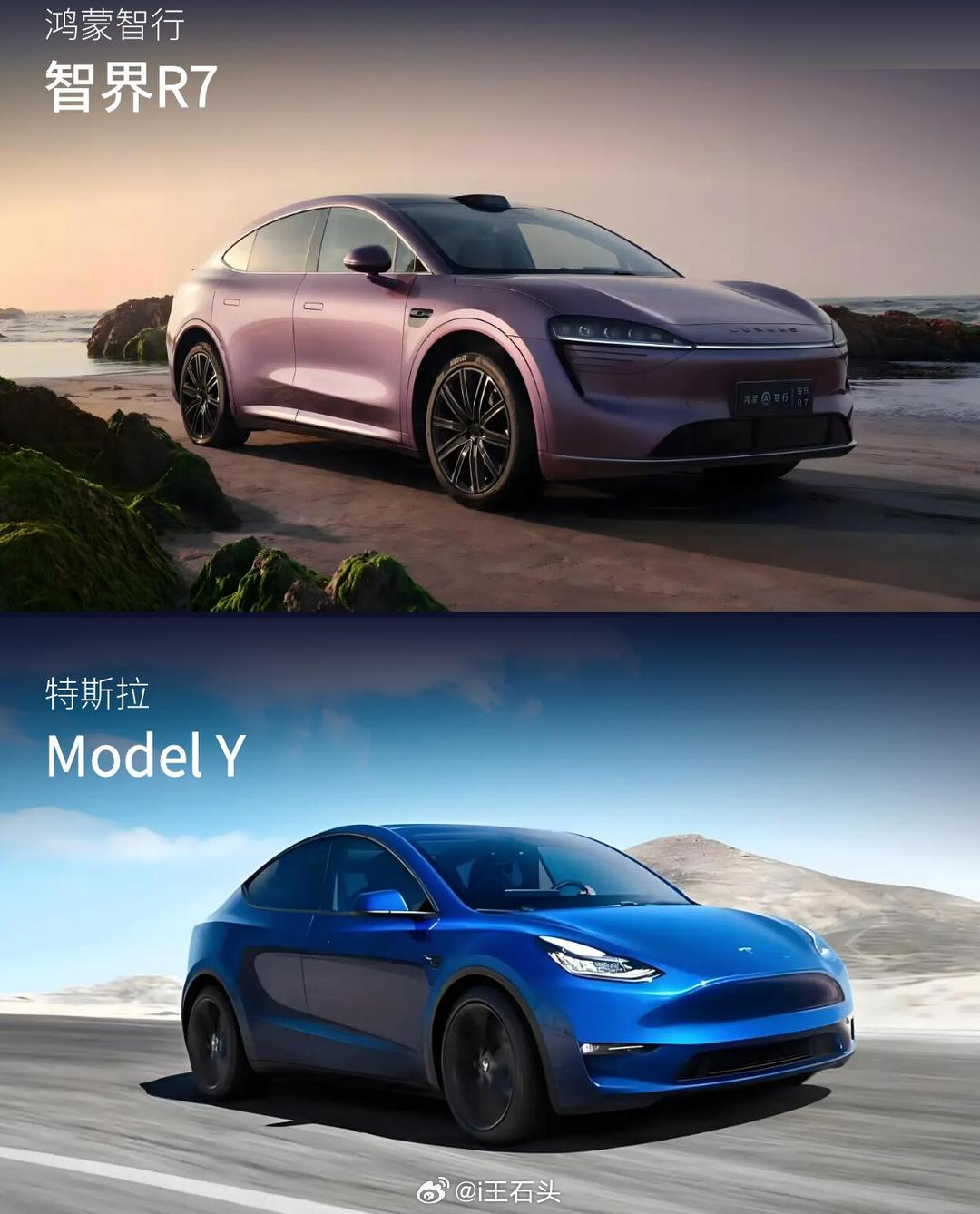 自媒体都说小米YU7外观是抄的法拉利,智界R7对标的是Model Y,是奔着特斯拉去的。