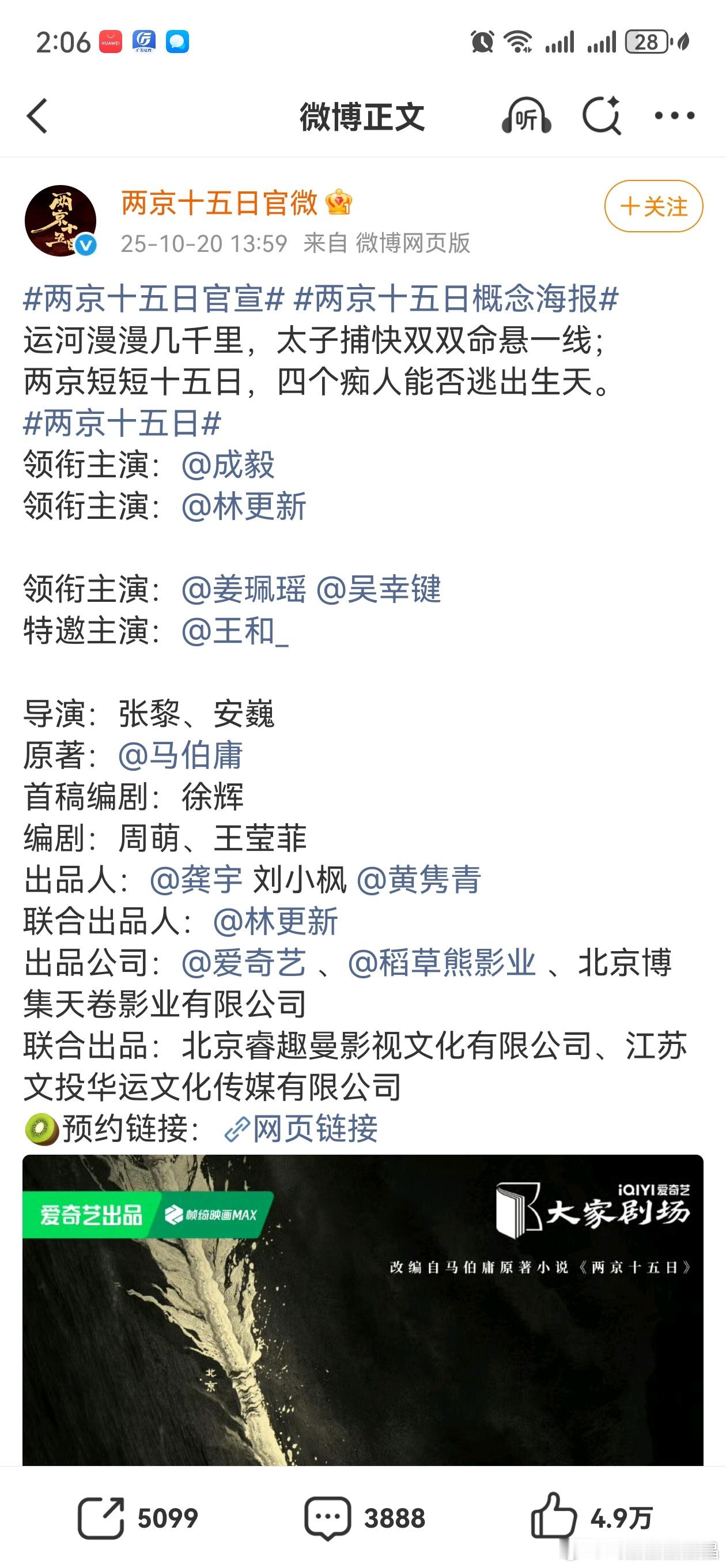 两京十五日官宣了,林更新身兼多职,既是领衔主演,又是联合出品人,睿趣曼是林更新的公司,林也是半个资本了。