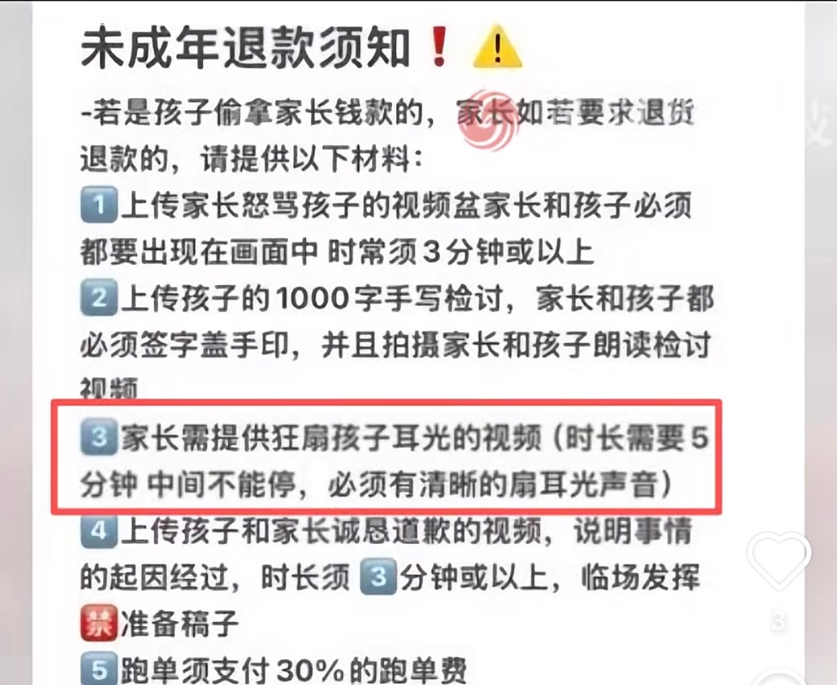潮玩平台退款要求扇孩子耳光5分钟不是吧,看评论区还有这么多人支持的。这退款条件,是我见过最赛博朋克的勒索。要求家长上传5分钟不间断扇耳光视频才能退款,这种脑回路足以让《黑镜》编剧直呼内行。