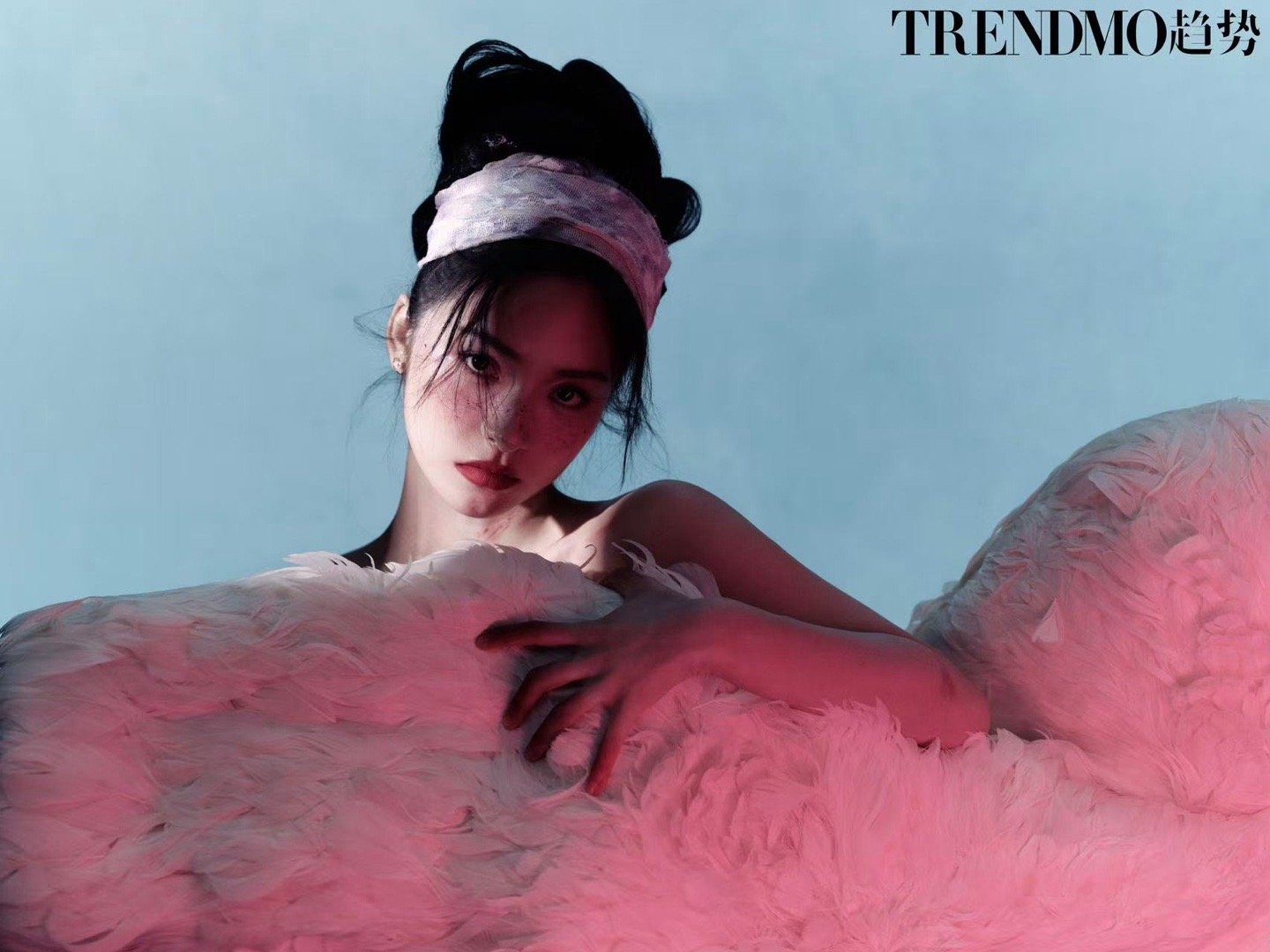 沈月首登趋势封面 沈月的趋势封面太有突破性!白色羽毛如云朵环绕,黑色纱幔似暗夜剪影,个性造型搭配氛围感妆容,趋势杂志精准挖掘她的空灵魅力,首登就让人看到不一样的她,超惊艳!