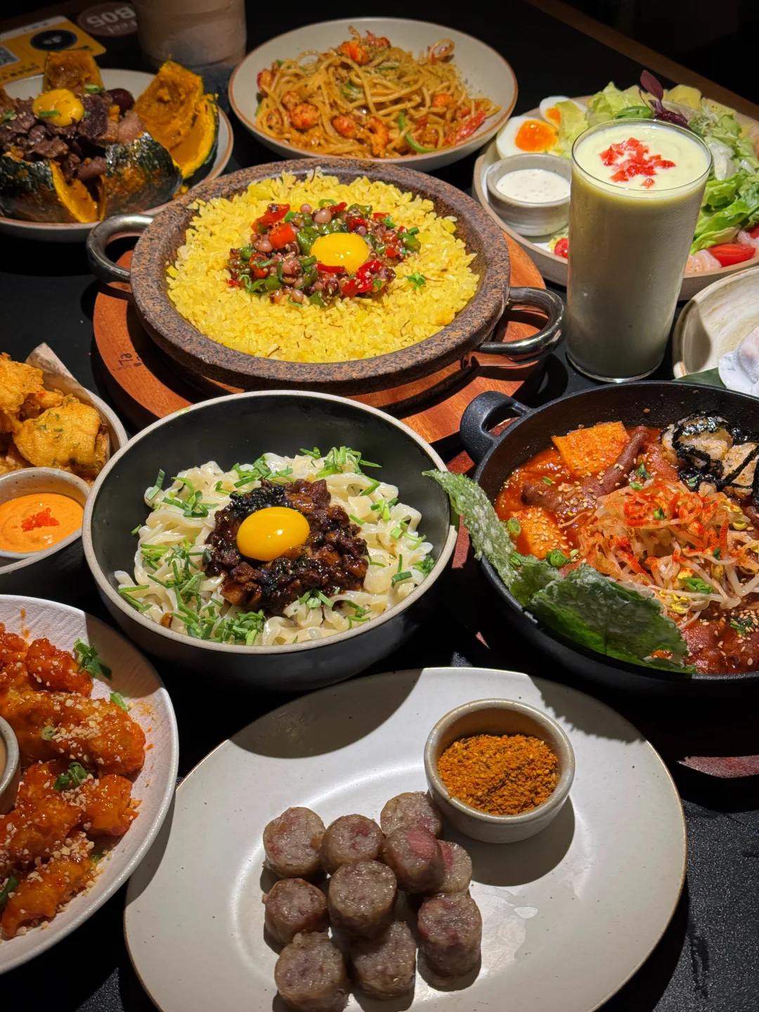 📝点单建议: 不要点口味太相似的 二人食可以2️⃣主菜+2️⃣主食+1️⃣甜品+1️⃣饮品 - 🫕个人推荐: ✔️开心牛油果雪花冰🥑、无花果雪花冰❄️,都是时令水果很清爽 吃起来很解辣🧊 ✔️主菜点马苏里拉芝士辣炒鸡🧀很好吃!每次来都会点,拉丝很绝!甜辣花生酱咕噜鸡也是脆香的口感!火山🌋鸡蛋糕就很滑嫩香软!还有贝贝南瓜牛肋排……太多了 都很不错 ✔️主食可以试试黑松露炸酱面、🍤海鲜葱饼、海灵菇炒饭、各种🍕披萨…… ✔️传统冷吃年糕、韩式的各种汤…还有蜂巢烧酒都很值得一试✌️✌️