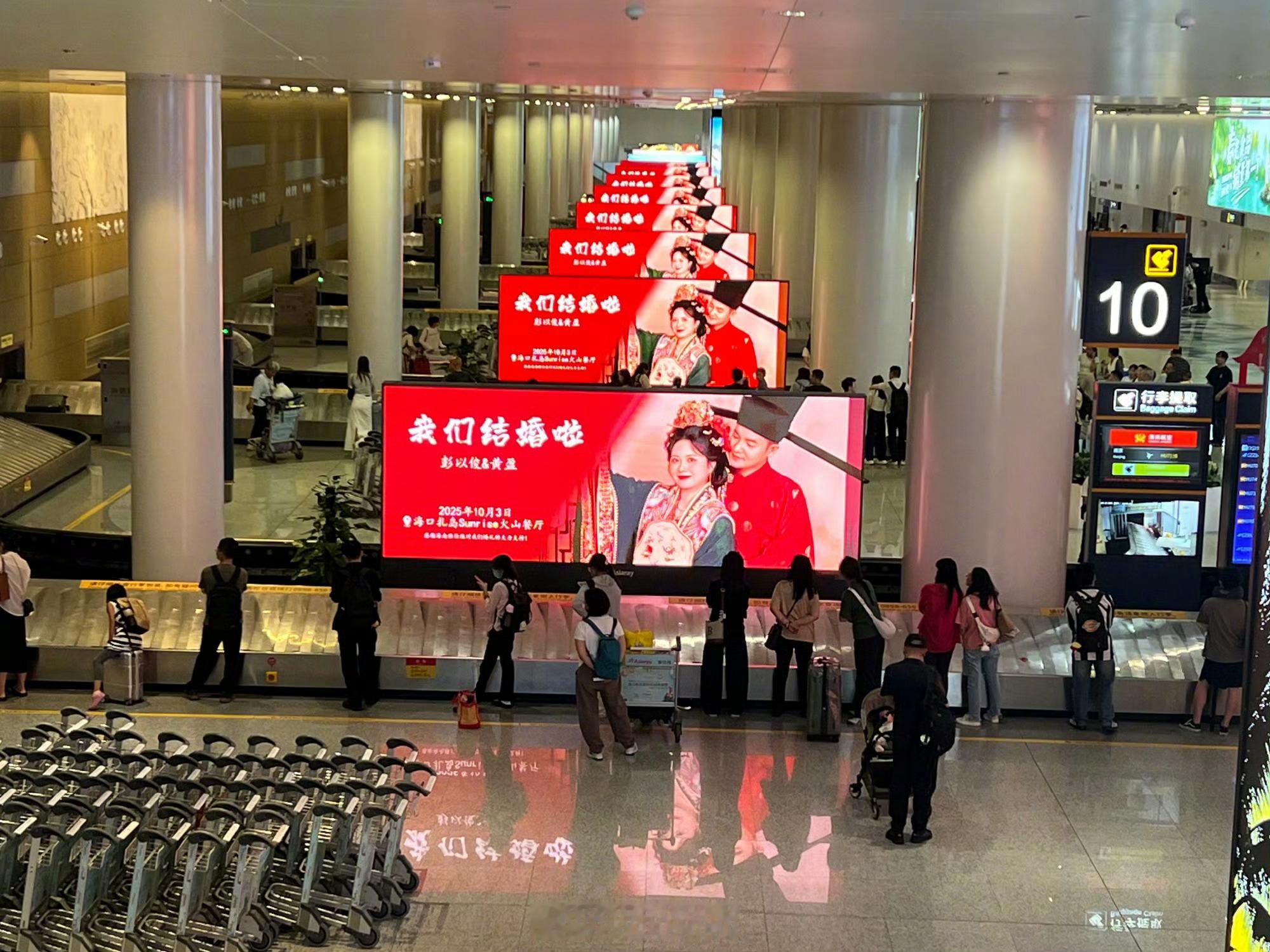 结婚请柬在机场88块屏幕连播8天机场没意见,网友有意见了,是嫉妒人家钱花的太多了吗[允悲][允悲]
