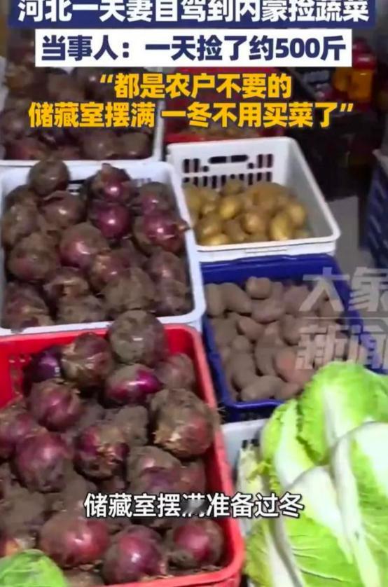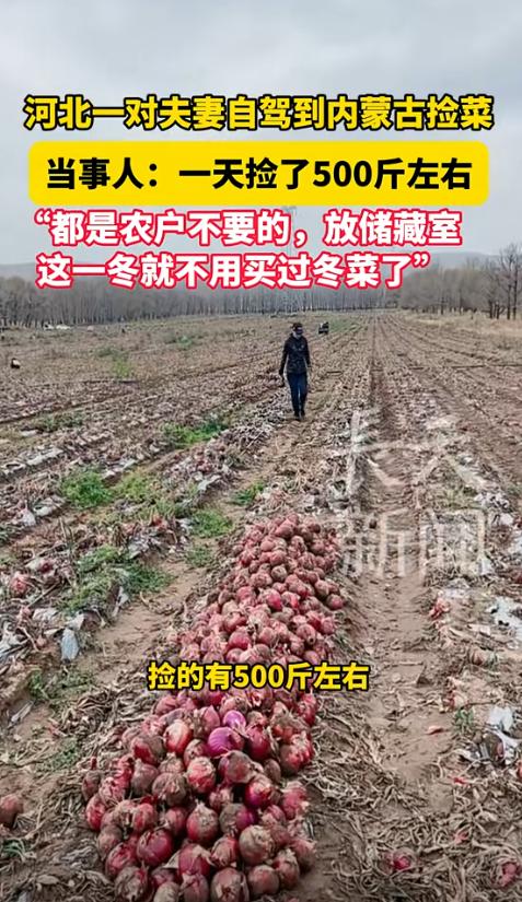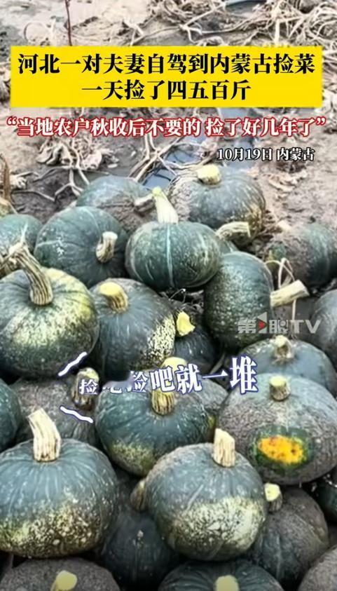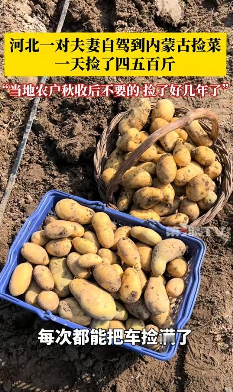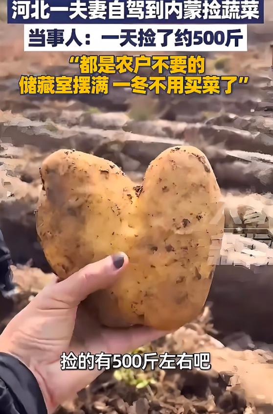这样挺好的,不浪费粮食!10月18日报道,河北一对夫妻去内蒙古玩,发现路边地里有很多蔬菜、土豆,竟然直接跑地里捡,农户发现后,不但不阻拦,反而催促他们:快捡吧,随便捡!原来,这些蔬菜都是农户不要的,就算他们不来捡,也是放在地里烂掉,夫妻俩1整天,捡了500斤,整个冬天的蔬菜都有了。 10月18日大象新闻报道,河北一对夫妻开着车去内蒙古玩,本来就想看看草原风景,结果这一趟下来,收获可比预想的大多了。 车子在公路上跑着,两边除了草原,就是一片片刚收完的农田,奇怪的是地里还散落着不少蔬菜,土豆、洋葱、白菜、甘蓝,东一堆西一堆的看着还挺新鲜。 夫妻俩心里纳闷,这些菜怎么没人要,正好前面有个农户在地里忙活,赶紧停车问问情况。 农户大哥特别实在,直接说:这些都是收割机漏下的,个头小的、长得不规整的,机器收不干净,要是再雇人来捡,工钱比这些菜值钱多了不划算,您要是需要随便捡反正放着也是烂掉。 听完这话夫妻俩眼睛都亮了,赶紧从车里拿出编织袋,撸起袖子就开干,男的在前面挖土豆、拔洋葱,女的在后面分类装袋还仔细挑选,只要那些完好的、能存放的。 内蒙古的秋天早晚温差大,中午太阳晒得人直冒汗,两口子从上午一直忙到太阳快落山,中间就啃了几口干粮,等停下来一看好家伙,整整捡了好几堆,看着要有500斤菜。 车后备箱塞得满满当当后座也堆了不少,回程路上女的还在算账:这些菜够咱俩吃一冬天了,省下的菜钱比油钱还多呢。 其实在内蒙古这种事儿并不稀奇,当地农户种地规模大,动不动就是几百亩上千亩,收割时用的都是大型机械效率是高了但总有遗漏,那些藏在叶子底下的、长在边边角角的,机器根本收不到。 再说了现在收购商要求也高,个头必须均匀外形得好看,稍微有点瑕疵的人家根本不收,农户算算账,专门为这些次品再组织人工采收,成本太高,还不如让它们回归土地当肥料。 当地还有个说法秋收后留些粮食在地里,是给过路的鸟兽留口粮,也是给有缘人留个念想,这种朴素的想法在内蒙古农村特别普遍。 有意思的是,这种捡菜文化还带动了一种特殊的旅游方式,每年秋收后,不少城里人专门开车到内蒙古农村转悠,既能看风景又能捡点新鲜蔬菜回去,农户们也乐见其成,有的还会主动指点哪块地里的菜多、哪种菜好存放。 网上有人分享过类似经历,说在内蒙古不光能捡菜,农户还会送些自家做的奶豆腐、风干肉,这种淳朴的民风,让很多外地游客印象深刻。 当然也有人担心这样会不会影响农户收入,实际上,农户们早就算明白了账,与其花钱雇人二次采收这些边角料,不如让有需要的人拿走,至少不浪费,况且这些散落的蔬菜加起来也就占总产量的百分之几,对整体收入影响不大。 这种做法还挺环保的,要知道全国每年因为各种原因浪费的粮食蔬菜数量惊人,如果各地都能像内蒙古农户这样,把那些卖相不好但质量没问题的农产品利用起来,能减少多少浪费。 现在城里人买菜都讲究品相好看、包装精美,但在田间地头,那些长得不那么标准的蔬菜,营养价值一点不差味道可能还更好,这次捡菜之旅让更多人意识到,食物的价值不在于外表,而在于它能填饱肚子、滋养身体。 麻烦看官老爷们右上角点击一下“关注”,既方便您进行讨论和分享,又能给您带来不一样的参与感,感谢您的支持!