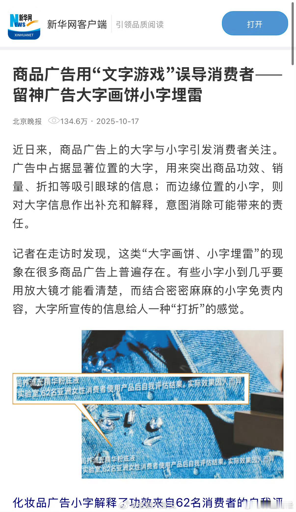 新华网:商品广告用“文字游戏”误导消费者——留神广告大字画饼小字埋雷