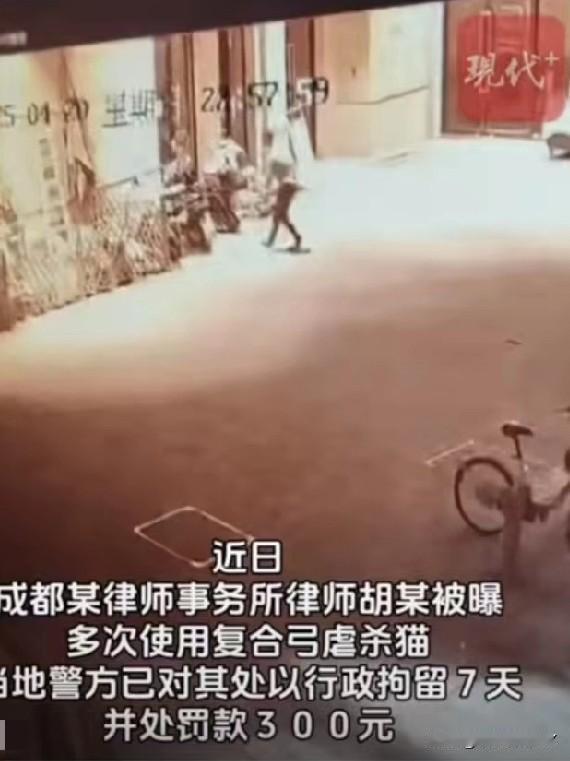 那些蓄意殴打、烫烙、活埋猫的人,心肠着实歹毒。 今天他们敢如此对待小动物,很难保证日后不会将这股狠劲发泄到人类身上。这无疑是在滋养“恶念”。 2025年4月20日晚,成都律师胡某先用食物诱骗牟女士门店院子里的三只猫,接着手持复合弓对它们射击虐待,导致一只橘白色猫死亡、一只狸花猫重伤,还有一只黄黑色猫失踪。 事发后胡某仅被行政拘留7天,罚款300元。 胡某曾在2023年就因类似虐猫行为被居民逮住,并赔偿了5000元。 总而言之:这样的罚款力度太轻了,给虐猫者判刑,不仅是为了保护这些无法言语的小生命,更是要向所有人宣告:欺凌弱者不会有好结果。 我们必须坚守内心的那份善良,唯有给虐猫者依法判刑,才能守住生命底线,让“以强凌弱”无处循行。 虐 万能生活指南 流浪猫