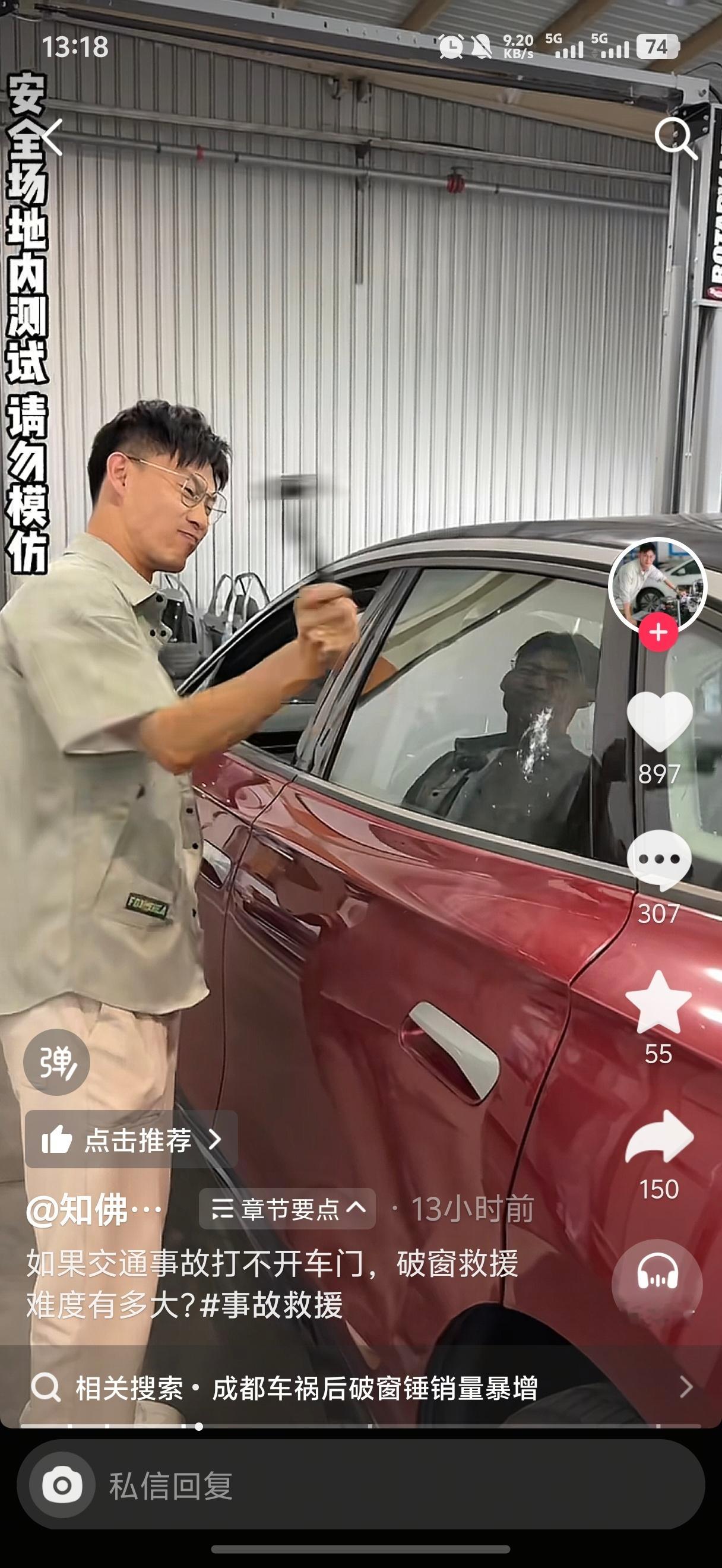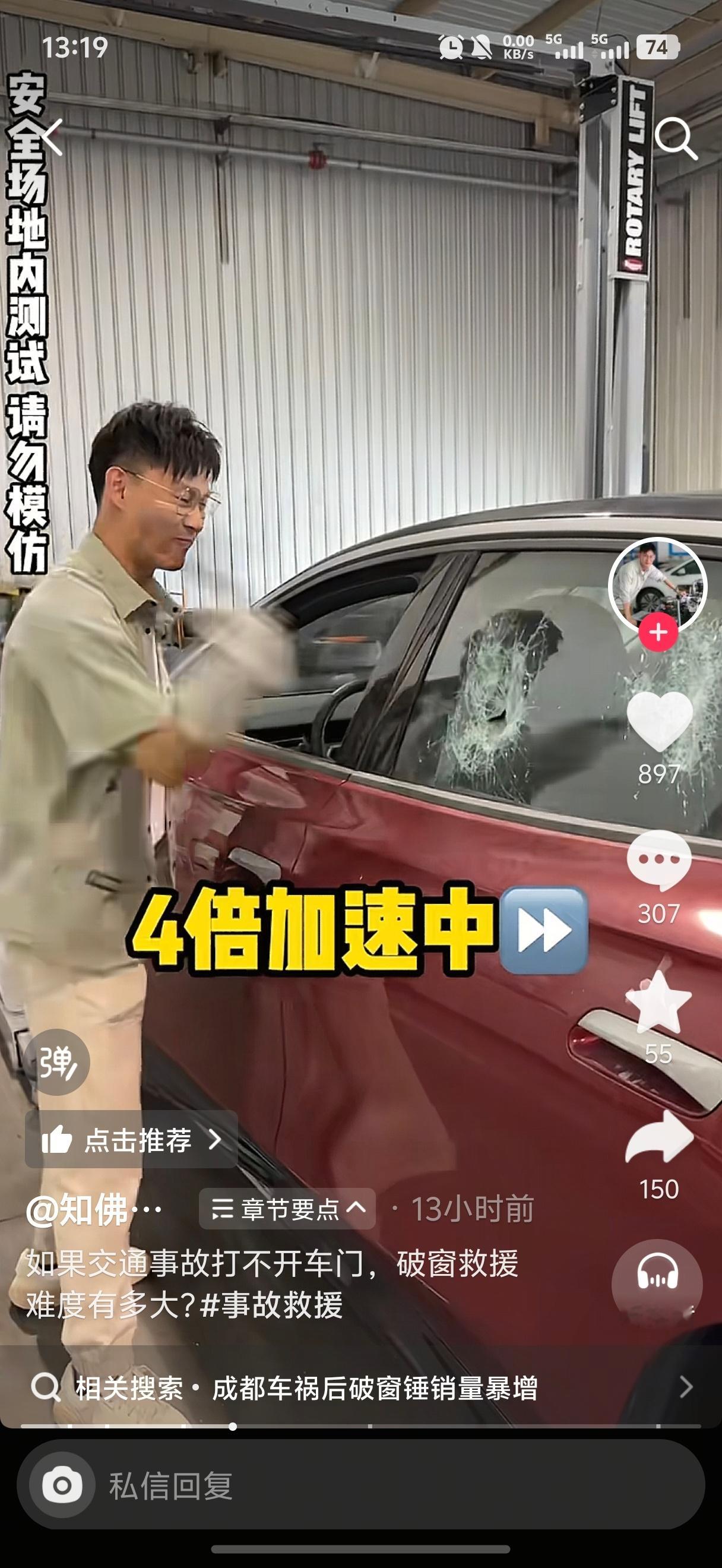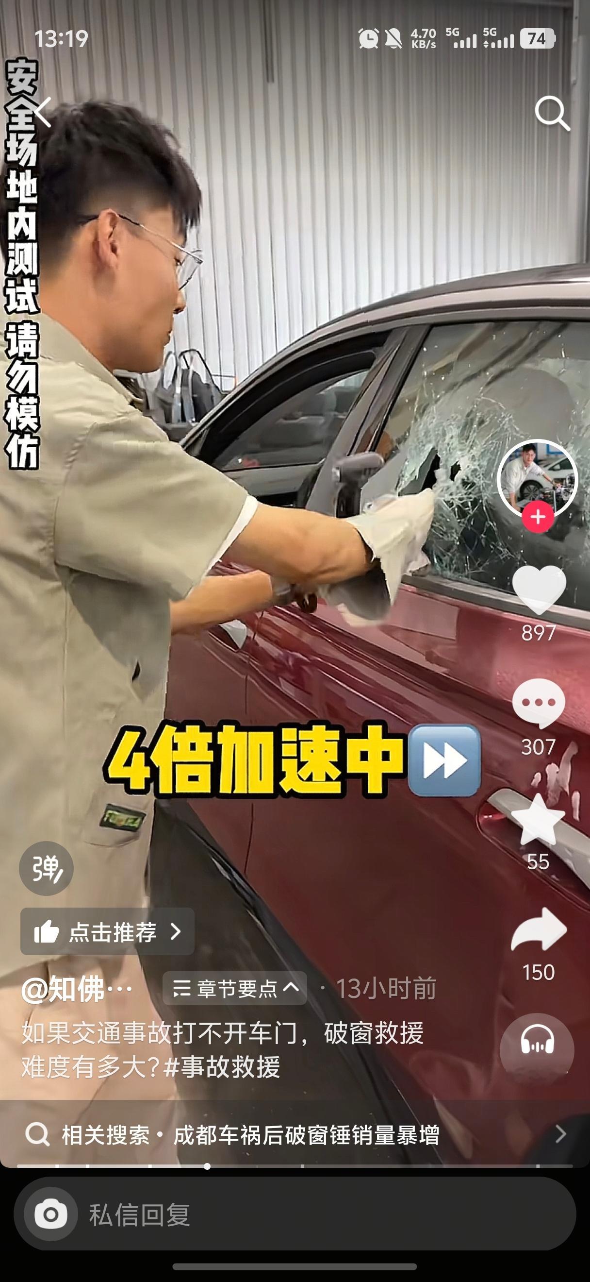 刷到个讲解破窗锤砸车窗的视频,现在双层夹胶玻璃真的很难砸开,更何况现在每辆车几乎都贴膜,砸碎后都黏在一起[允悲]