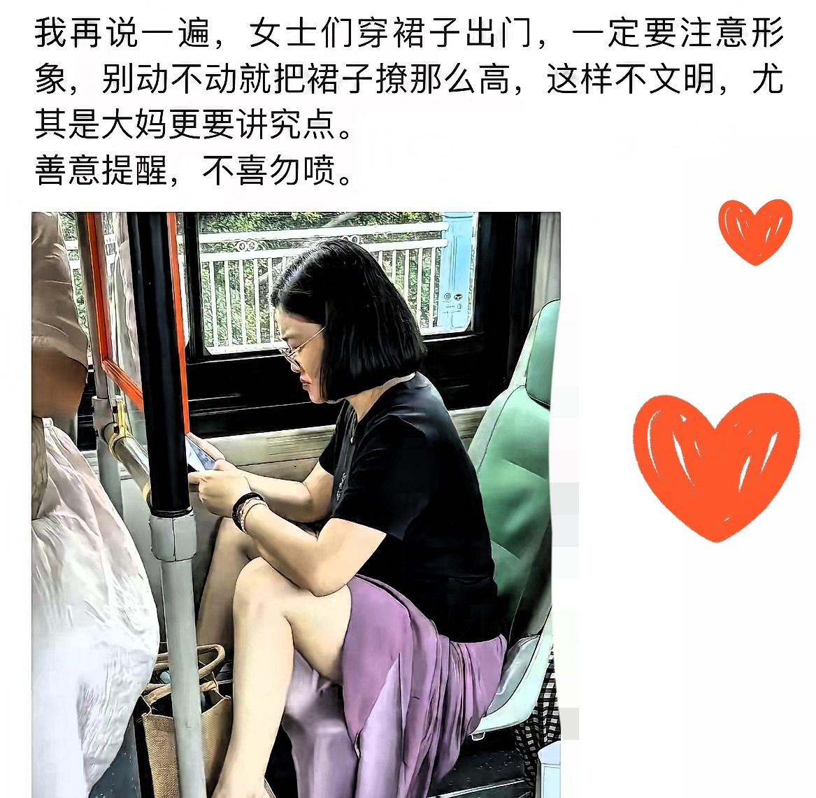 真心想跟姐妹们说句实在的:出门在外注意形象是没错 但别总盯着“穿裙子撩得高不高”说事儿,更别特意把“大妈”拎出来说! 穿裙子是为了舒服好看,只要不是故意露隐私、影响别人,偶尔调整裙摆很正常。 咱们该在意的是公共场合别大声喧哗、别乱扔垃圾这些真·不文明行为,而不是盯着女性的裙子长度评头论足。 再说了,“小朋友看见怎么办”“大叔大爷怎么想”这种话,潜台词不就是把问题推给女性吗? 真正该教的是大家尊重他人、管好自己的目光,而不是让女性为别人的想法妥协。 其实不管穿啥,得体和舒服最重要。你们觉得在公共场合,更该关注行为文明,还是纠结穿着细节呢?