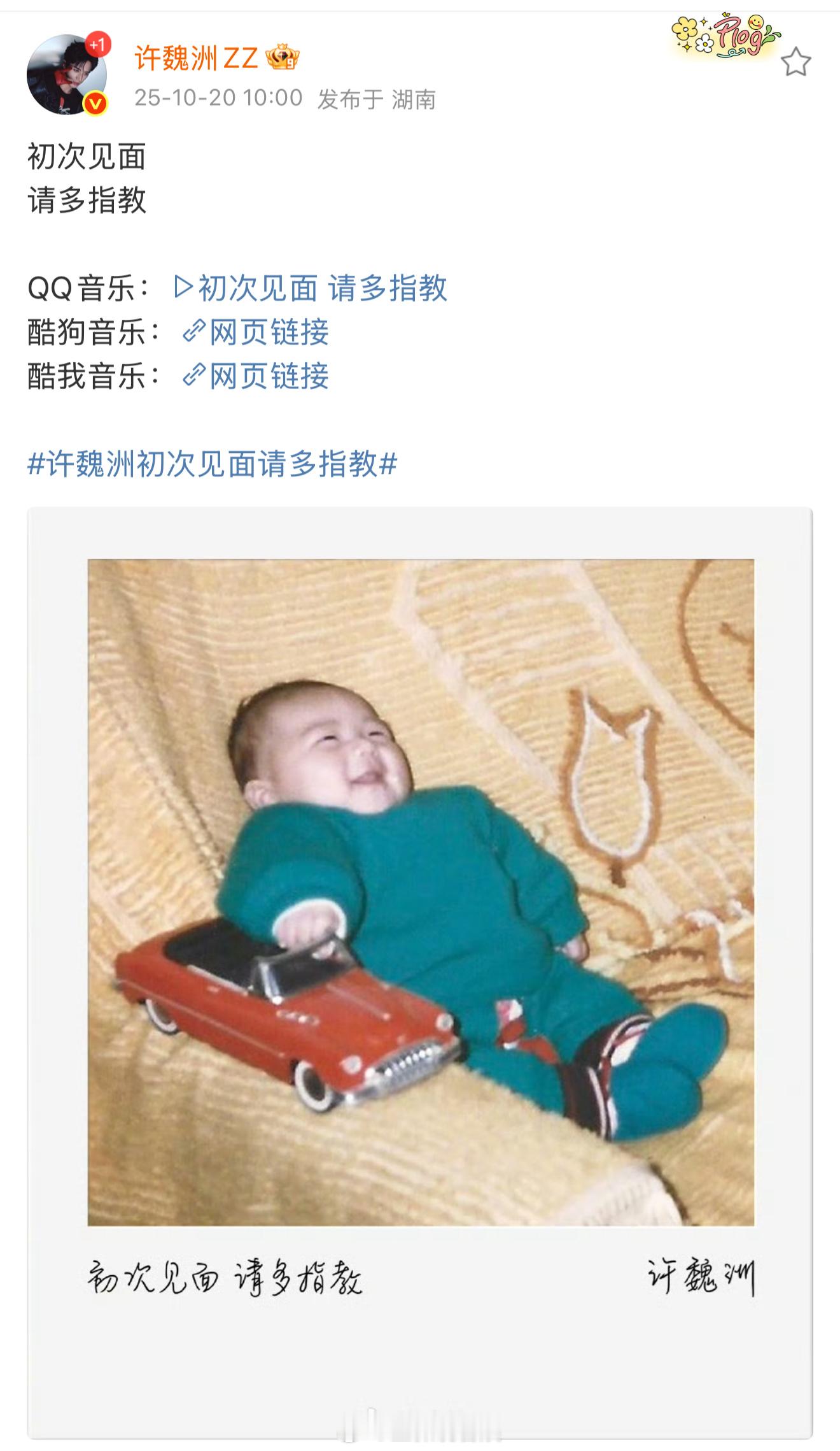 许魏洲发了30年前的照片 发布最新生日单曲《初次见面 请多指教》,像是一封写给“开始”的情书,秋日有温暖嗓音伴随~许魏洲[超话]