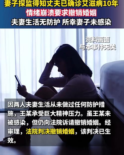 这么大的事都敢隐瞒!10月19日报道,云南一男子违法被捕入狱,妻子探监时,得知丈夫竟然确诊HIV,而且是在他们结婚前就有了,丈夫隐瞒艾滋病近十年,二人夫妻生活无防护,曾对妻子撒谎称患肝病需要服药,妻子情绪崩溃向法院诉请离婚,法院判了! 10月19日观察者网报道,云南的王女士怎么也没想到,自己精心照顾多年的丈夫李某,竟然一直在用谎言欺骗着她。 王女士和丈夫李某两人经朋友介绍相识,相恋没多久就很快步入婚姻殿堂,婚后不久王女士就发现丈夫李某需要长期服药。 李某轻描淡写地解释道:这是治肝病的药慢性肝炎,得长期调理,善良的王女士深信不疑,不仅按时提醒丈夫吃药,还经常研究各种护肝食谱,变着花样给丈夫做营养餐。 就这样两人生活多年一直没有孩子,王女士心里着急,可李某又搬出了肝病的借口,医生说肝功能不好会影响生育,等身体调理好了再要孩子,这个解释听起来合情合理,王女士也就没再追问。 但是让人后怕的是,因为相信丈夫只是普通的肝病,两人在夫妻生活中从未采取任何防护措施,王女士完全没意识到,自己每天都在与危险共眠。 直到2021年12月,李某因为开设赌场被警方抓获最终被判刑入狱,担心丈夫在监狱里断药,王女士特意准备了一大包护肝药,坐了两个多小时的车去探监。 当她把药品交给狱警时,对方的一句话如同晴天霹雳:这些药不对啊,您丈夫患的是艾滋病,需要的是抗病毒药物,而且他的病历显示,早在2011年就确诊了。 王女士当场愣住了手里的药袋掉在地上,嘴里不停地重复着不可能,狱警调出了李某的医疗档案,白纸黑字清清楚楚地写着,2011年确诊HIV阳性。 算算时间,李某在认识王女士之前就已经是HIV感染者了,这意味着,从相识到结婚,从新婚到现在,整整几年的时间里李某一直在撒谎。 在监狱探视的时候,王女士质问李某为什么要隐瞒,李某这才承认了事实,但他还在狡辩:医生说我接受治疗后病毒载量很低,基本没有传染性,我不告诉你是怕你不愿意跟我结婚。 这番话彻底击碎王女士对这段婚姻最后的幻想,她回到家后连夜赶到医院做了全面的HIV检测,等待结果的那几天,她茶饭不思,体重急剧下降了十多斤,每一分每一秒都是煎熬,她不敢想象如果自己被感染了该怎么办。 幸运的是检测结果显示阴性,王女士没有被感染,但这段充满欺骗的婚姻已经让她身心俱疲,她决定向法院起诉撤销和李某的婚姻。 王女士收集了所有证据,包括李某的病历、两人的结婚证等,向法院提起诉讼,要求撤销这段建立在谎言基础上的婚姻。 庭审过程中李还在为自己辩解,声称自己的病情已经得到控制,不会传染给妻子,但法官明确指出,根据《民法典》相关规定,HIV属于法定传染病,患者在结婚前有告知义务,李某无法提供任何曾经告知妻子的证据,而王女士的起诉也在法定时限内。 最终法院判决撤销两人的婚姻关系,王女士恢复单身状态,这个判决不仅是对王女士的保护,更是对婚姻诚信原则的维护。 这起案件在网络上引发了广泛讨论,许多网友表示愤慨:这种行为太自私了,完全是拿别人的生命开玩笑,也有人提醒:婚前体检真的很重要,不能因为不好意思就省略这个步骤。 这个案例给所有敲响了警钟,婚姻的基础是相互信任和坦诚,任何重大事项的隐瞒都可能成为婚姻的定时炸弹,特别是涉及健康问题,更应该开诚布公。 这也提醒大家婚前体检的重要性,很多人觉得婚检是走过场,或者碍于面子不愿意做,但实际上这是对双方负责任的表现,通过专业的医学检查,可以及早发现潜在的健康问题,避免日后的纠纷和伤害。 婚姻不是儿戏,健康更不能拿来赌博,希望这个案例能让更多人明白,真诚才是婚姻最坚实的基石。 麻烦看官老爷们右上角点击一下“关注”,既方便您进行讨论和分享,又能给您带来不一样的参与感,感谢您的支持!