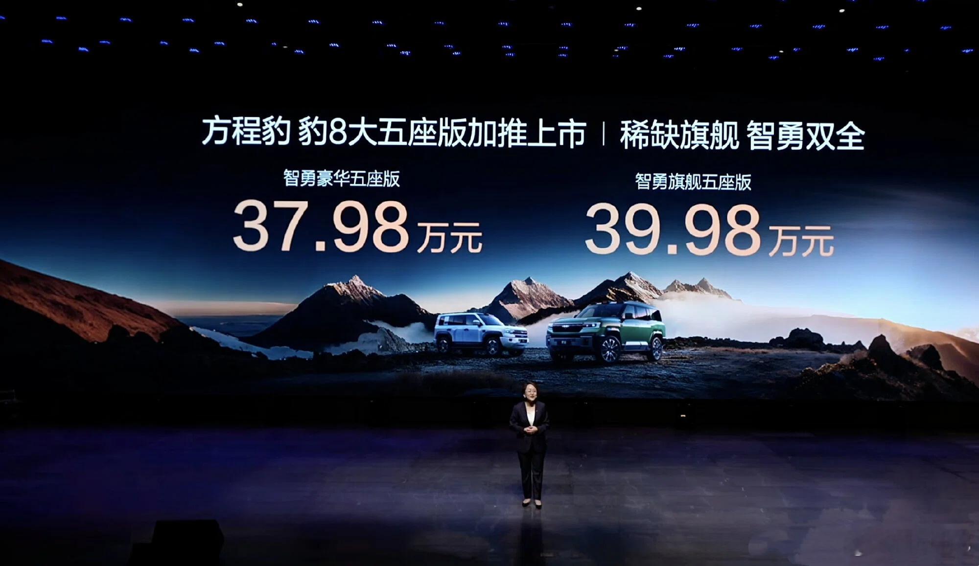 方程豹豹5长续航版和豹8的大五座版今天正式上市。除了新增的个性化套件选项以外,这次豹5长续航版还将标配云辇-P,并且拥有可以智能防起雾的比亚迪智能空调2.0;大五座版的豹8这边主要是空间安排上的调整,另外其车载冰箱也开始支持电动开闭。人人可野·拥豹新生活豹5长续航版豹8大五座版