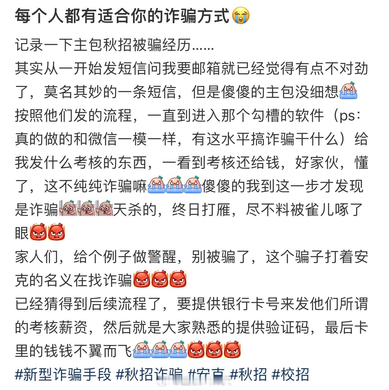 最近刷到了有大学生秋招被骗经历,如果你正在经历秋招,或是家里孩子正在经历秋招,务必要小心!