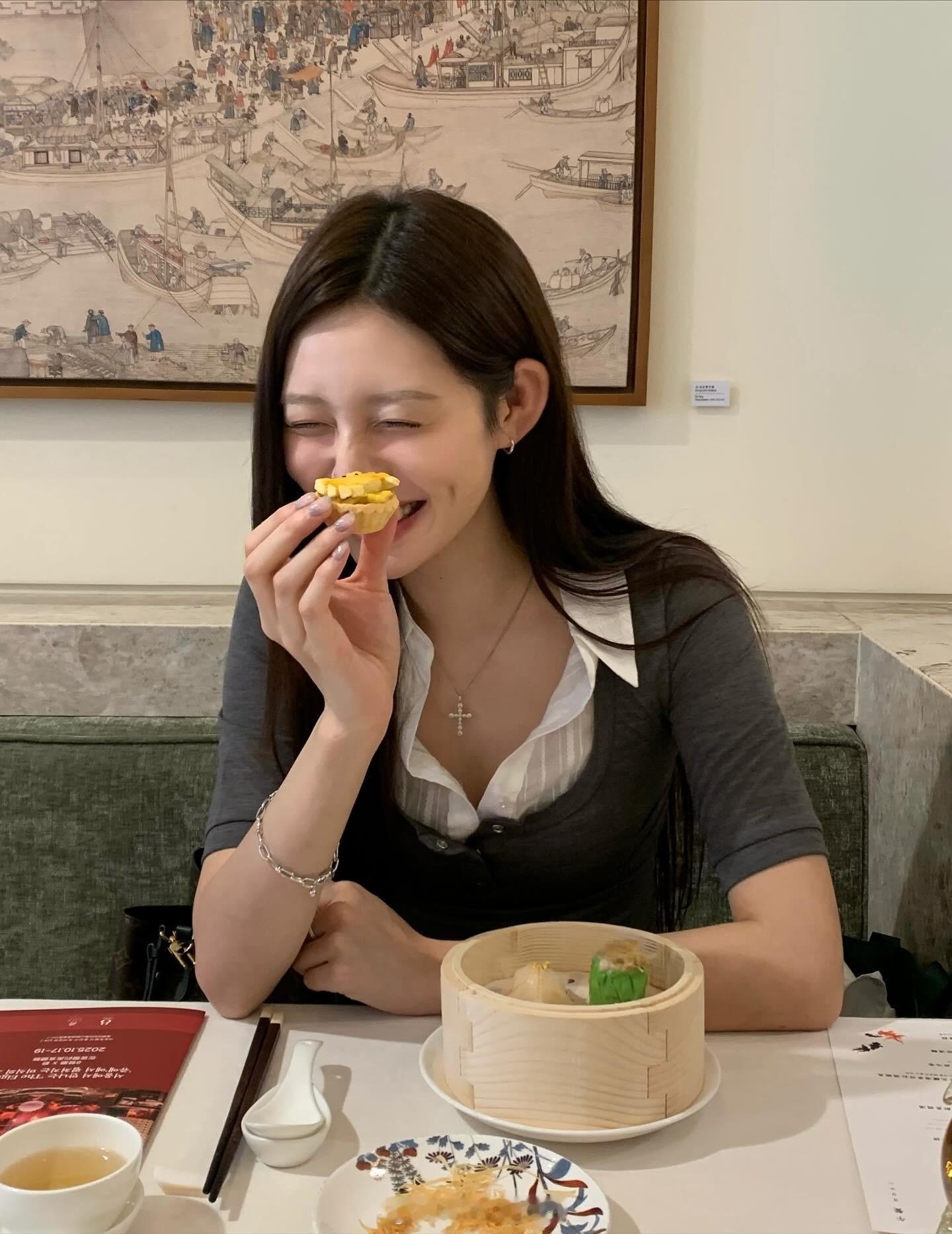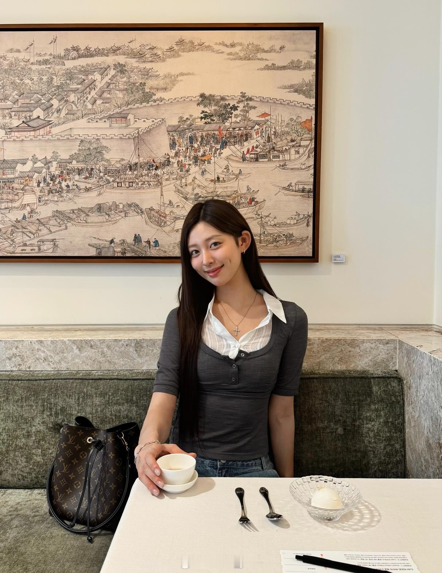 张天爱跟素人合影,胯真的好宽,大宅院似的