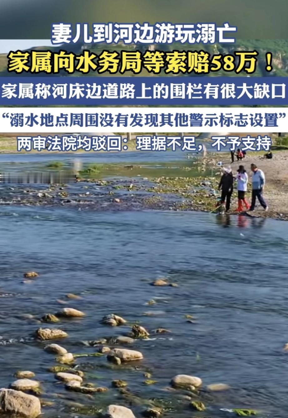 一家三口到河边游玩,妻子和儿子不幸落水溺亡。家属认为河边围栏有缺口、缺少警示标志,起诉水务局等单位索赔58万。 但法院两审都驳回了诉求,认为理据不足。虽然同情家属的遭遇,但成年人带孩子去野外水域玩耍,自己首先要对安全负责。 河边游玩务必谨慎,别把生命寄托在警示牌上。自然水域暗藏危险,安全第一啊!